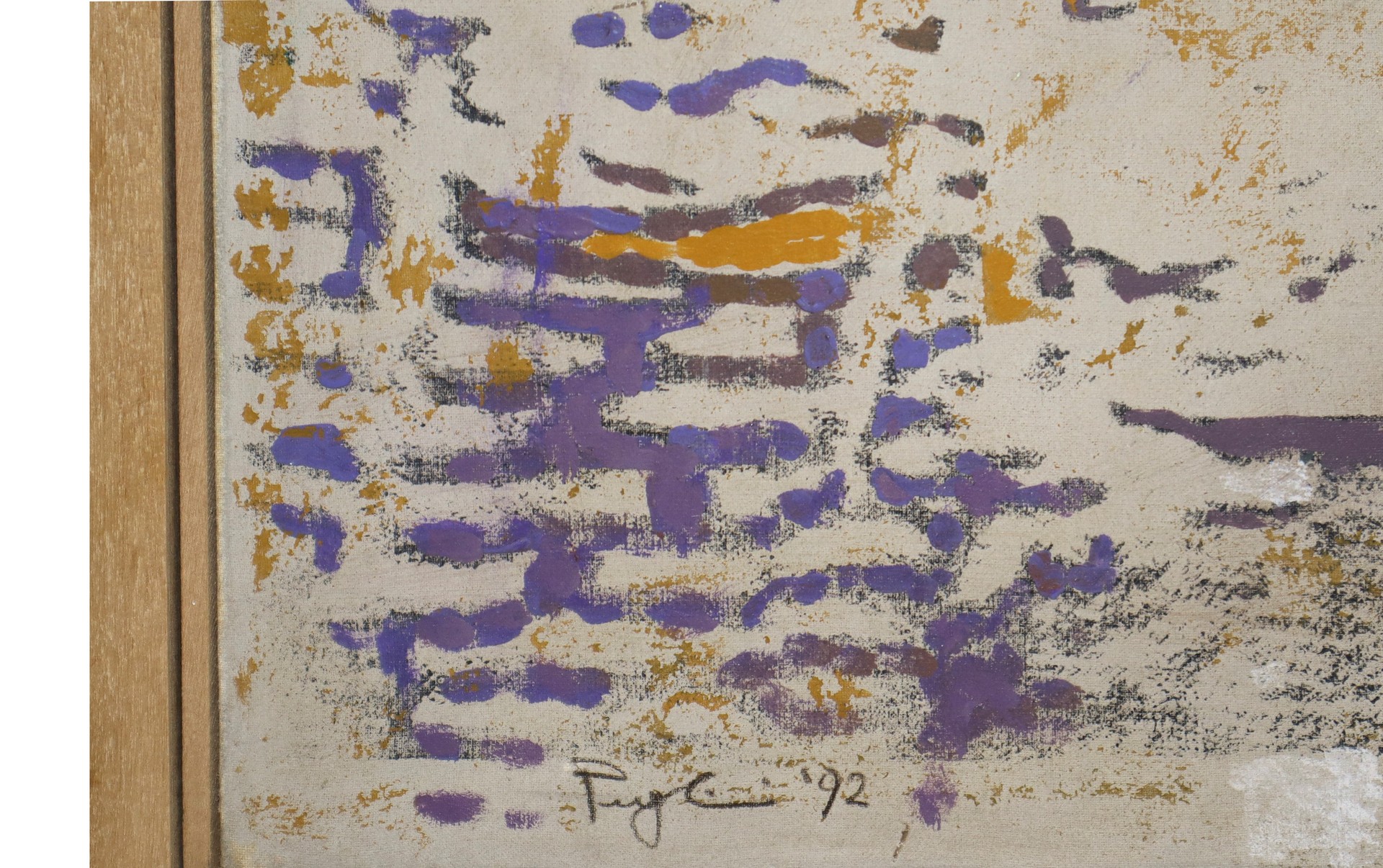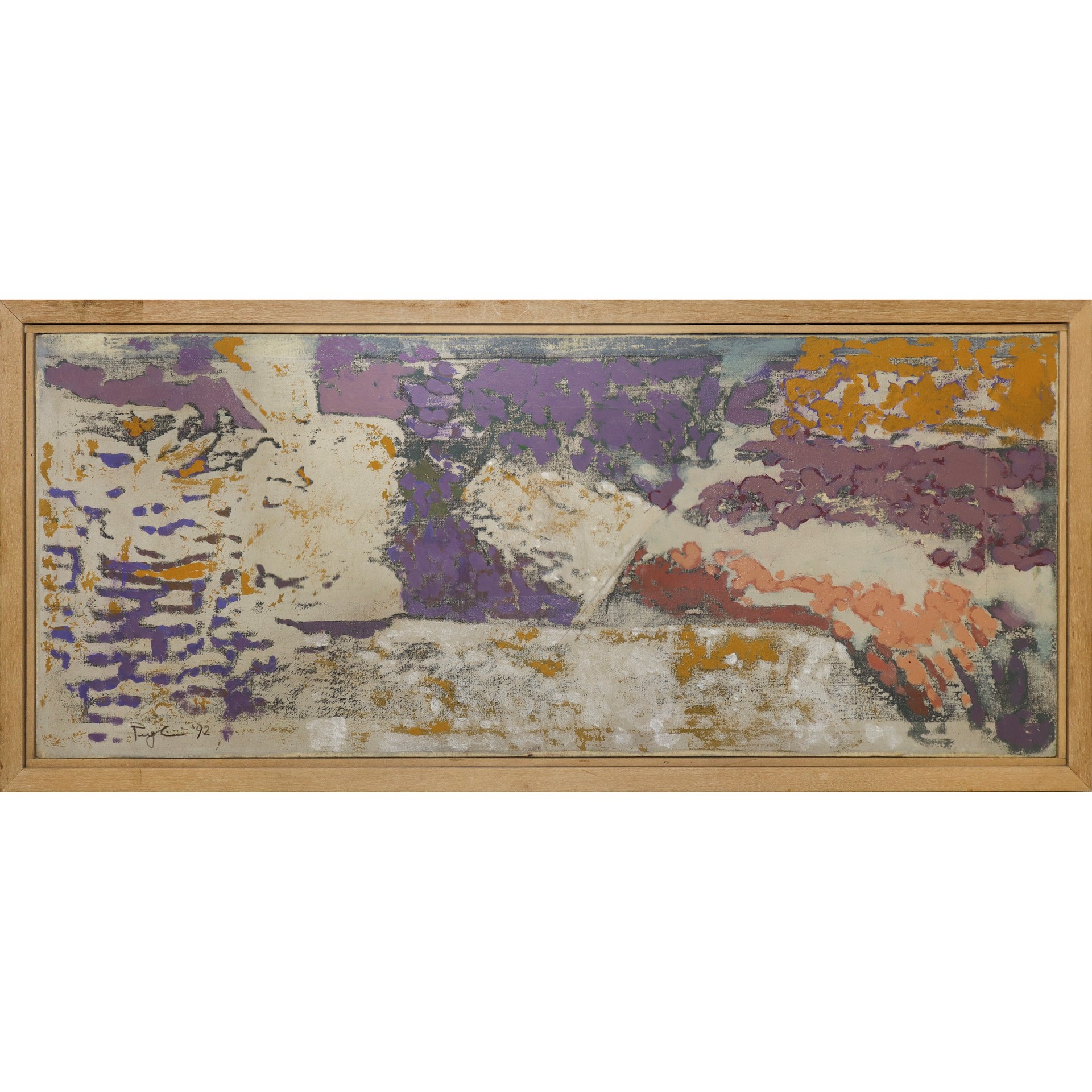 Giuseppe Puglisi (Catania 1965) - Senza Titolo, 1992 cm 28x70, in cornice cm 32x74 Olio su tela Firma e data sul fronte in basso a sinistra
