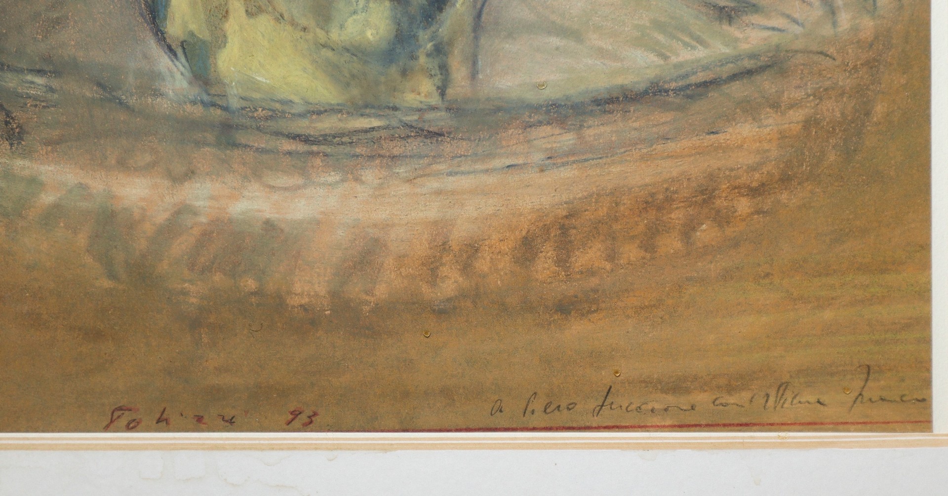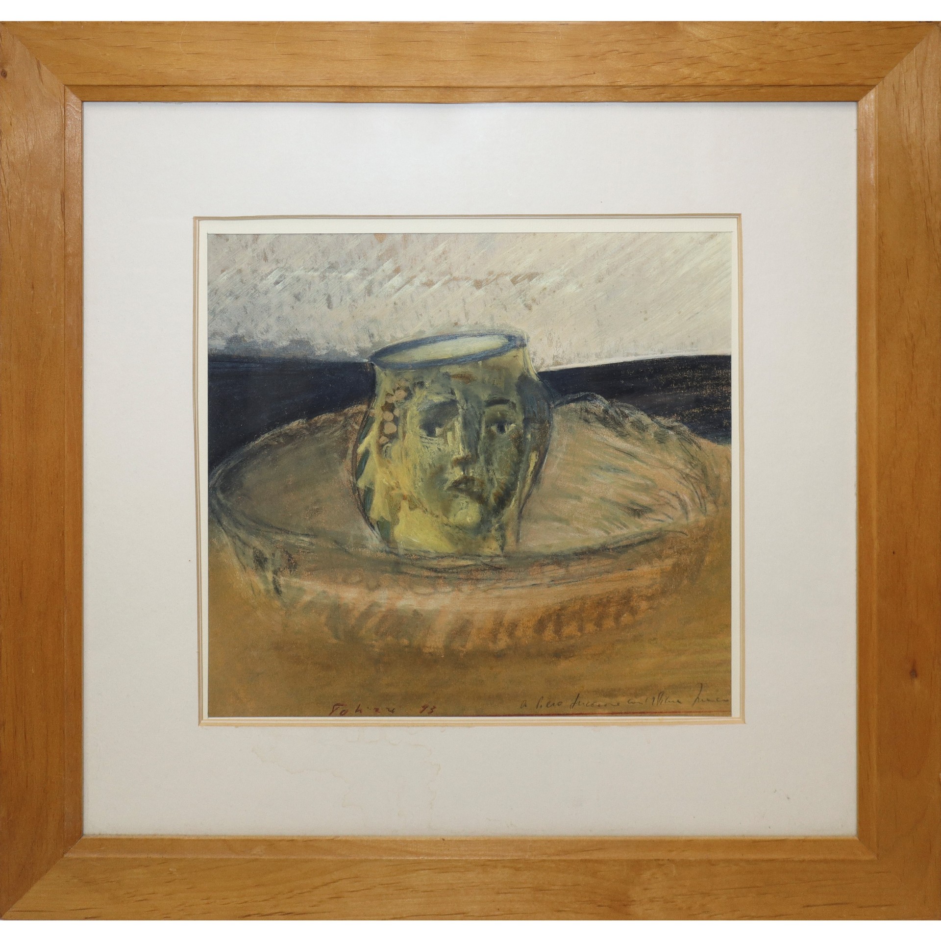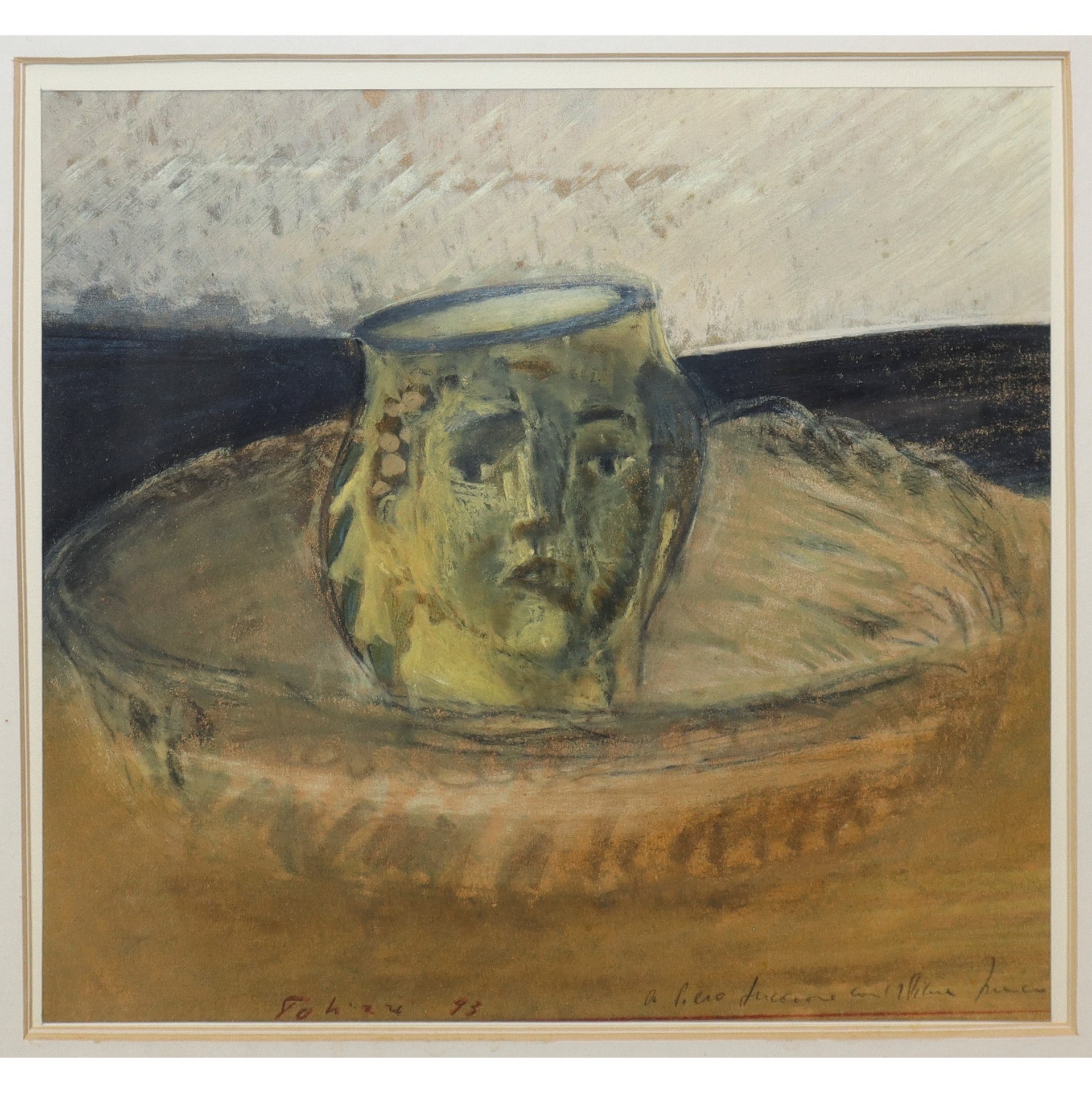 Franco Polizzi (Scicli 1954) - Vaso antropomorfo, 1993 cm 30x35 in cornice cm 55x57 Tecnica mista su carta Firmato e datato sul fronte al centro dedicato "A Piero con stima" in basso a destra