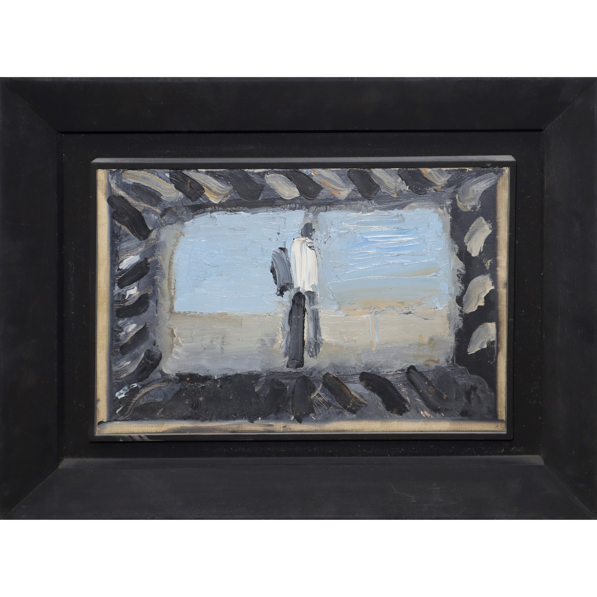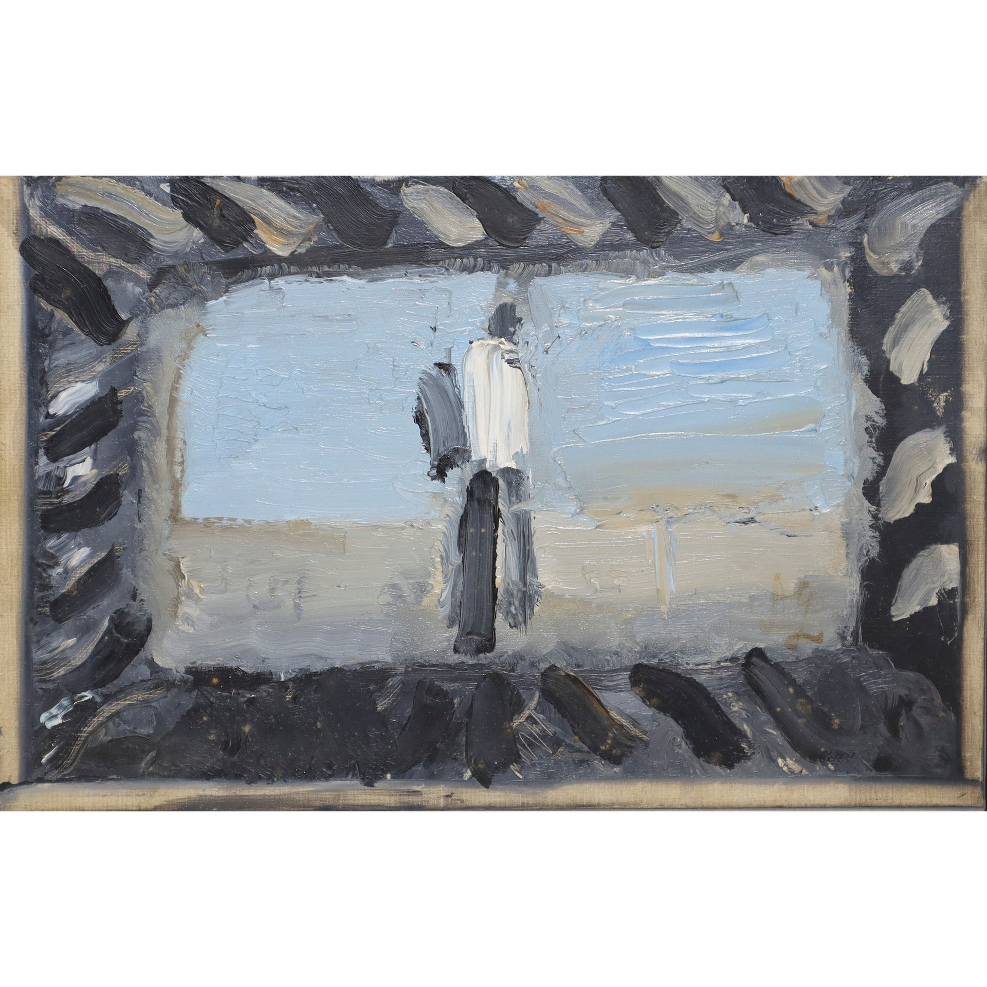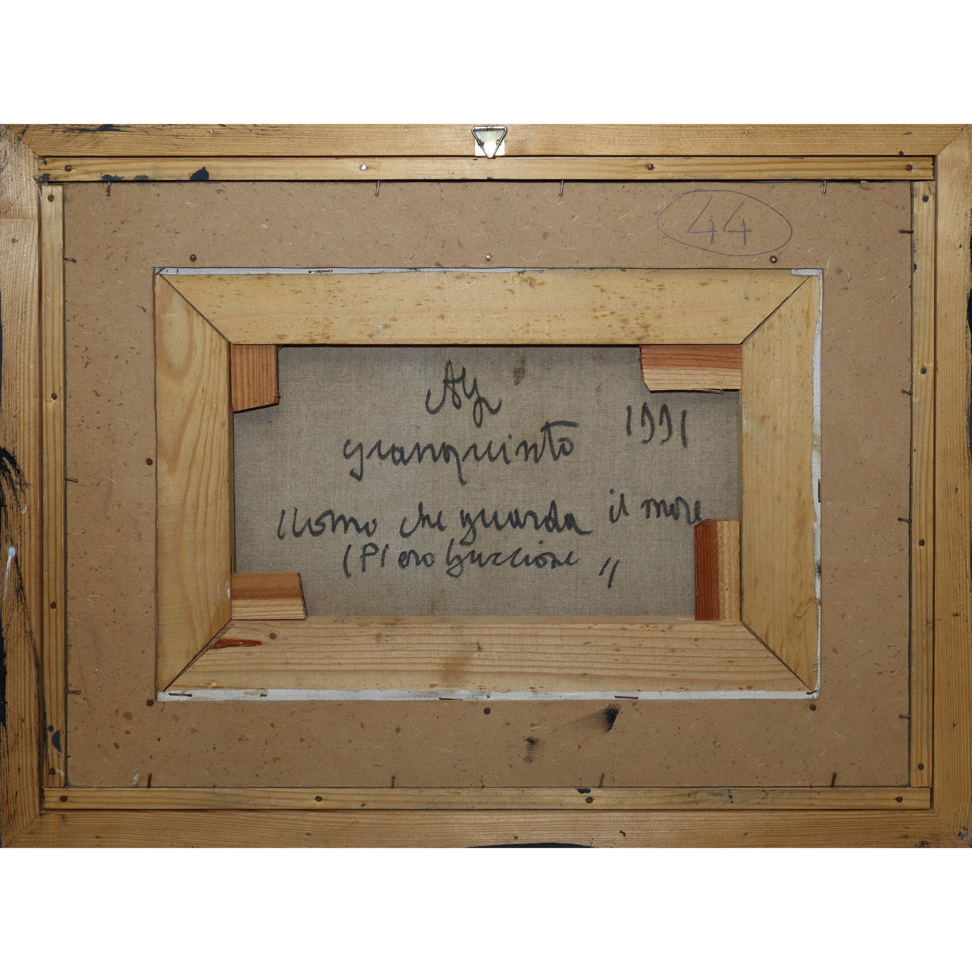 Alberto Gianquinto (Venezia 29 marzo 1929-Jesolo 17 maggio 2003) - Uomo che guarda il mare (Piero Guccione), 1991 cm 20x30 in cornice cm 35x46 Olio su tela Firmato, datato e titolato al retro