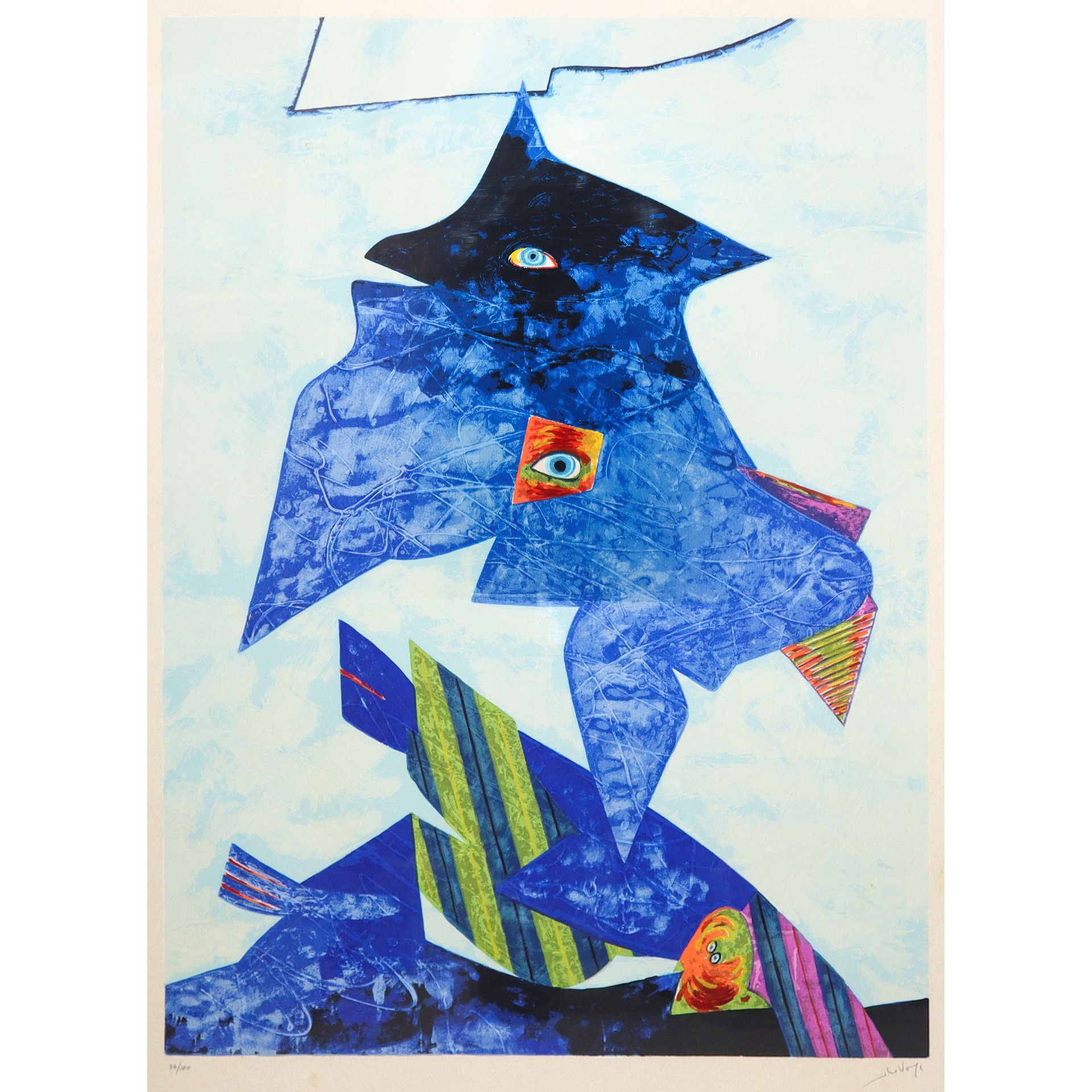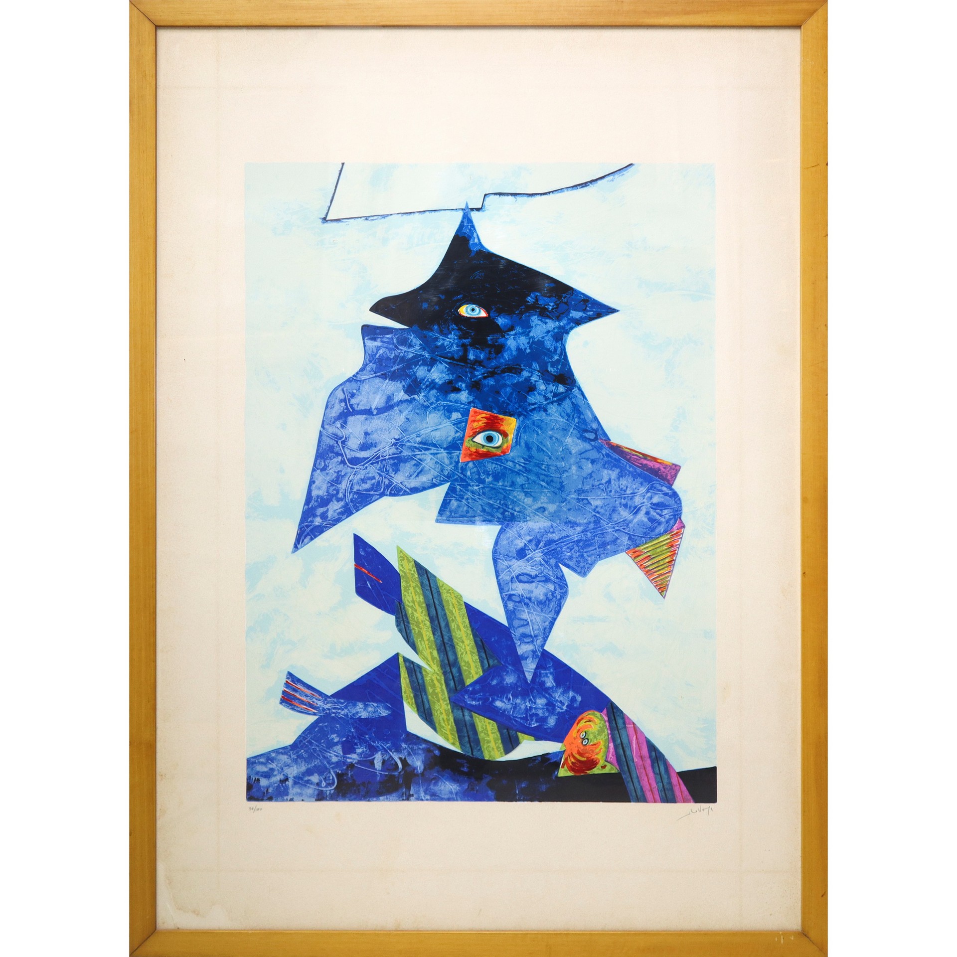 Gianni Dova (Roma 1925-Pisa 1991) - Senza titolo H 100, base 70 in cornice 104x74 Grafica Esemplare 34/100. Tiratura e firma sul fronte