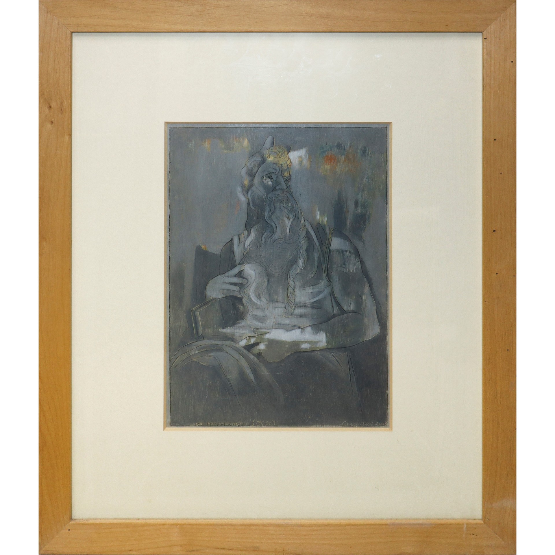 Carmelo Candiano (Scicli 1951) - Da Michelangelo (Mosè), 2003 cm 33x23 in cornice 59x49 Tecnica mista su carta Firmato titolato e datato sul fronte