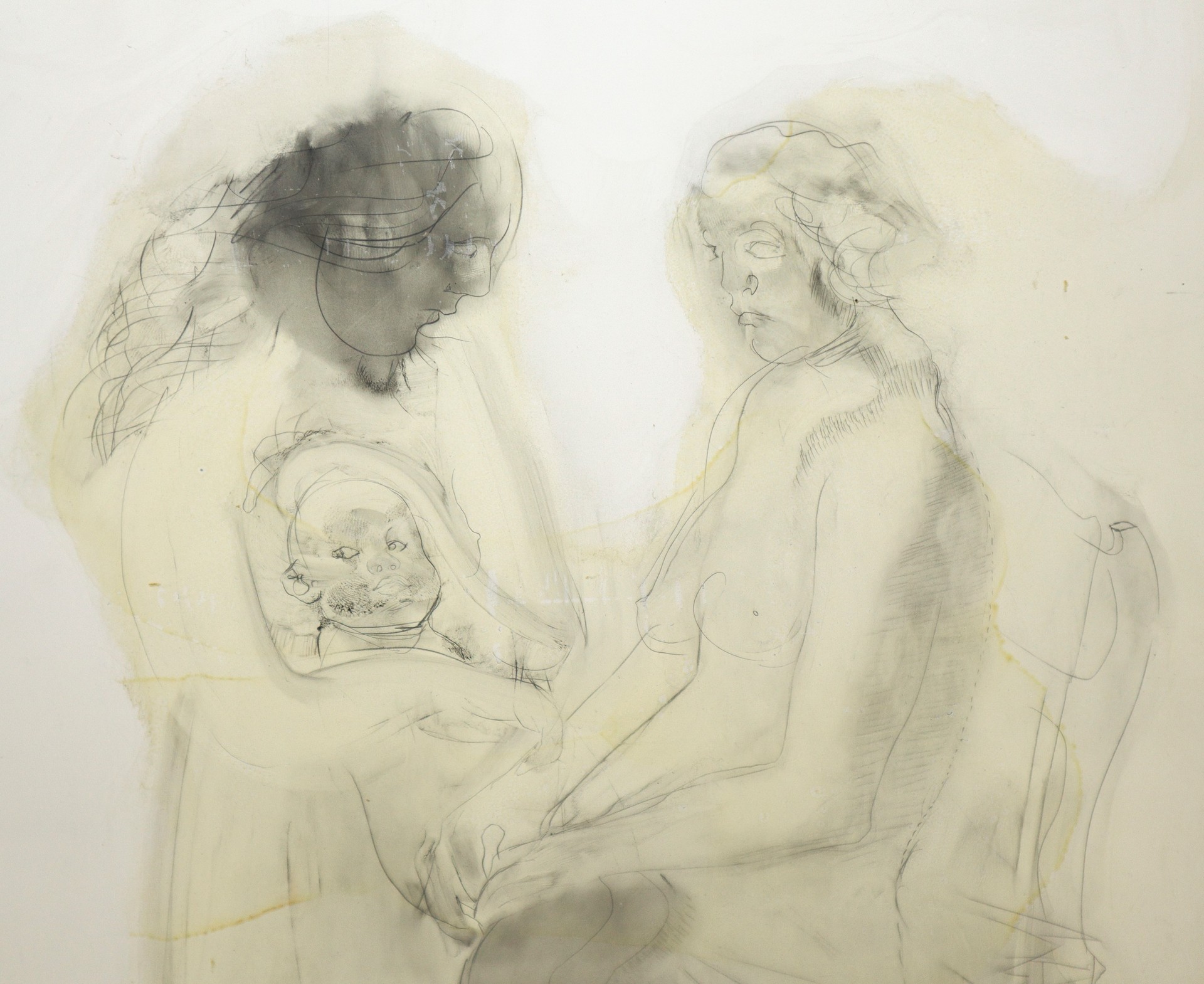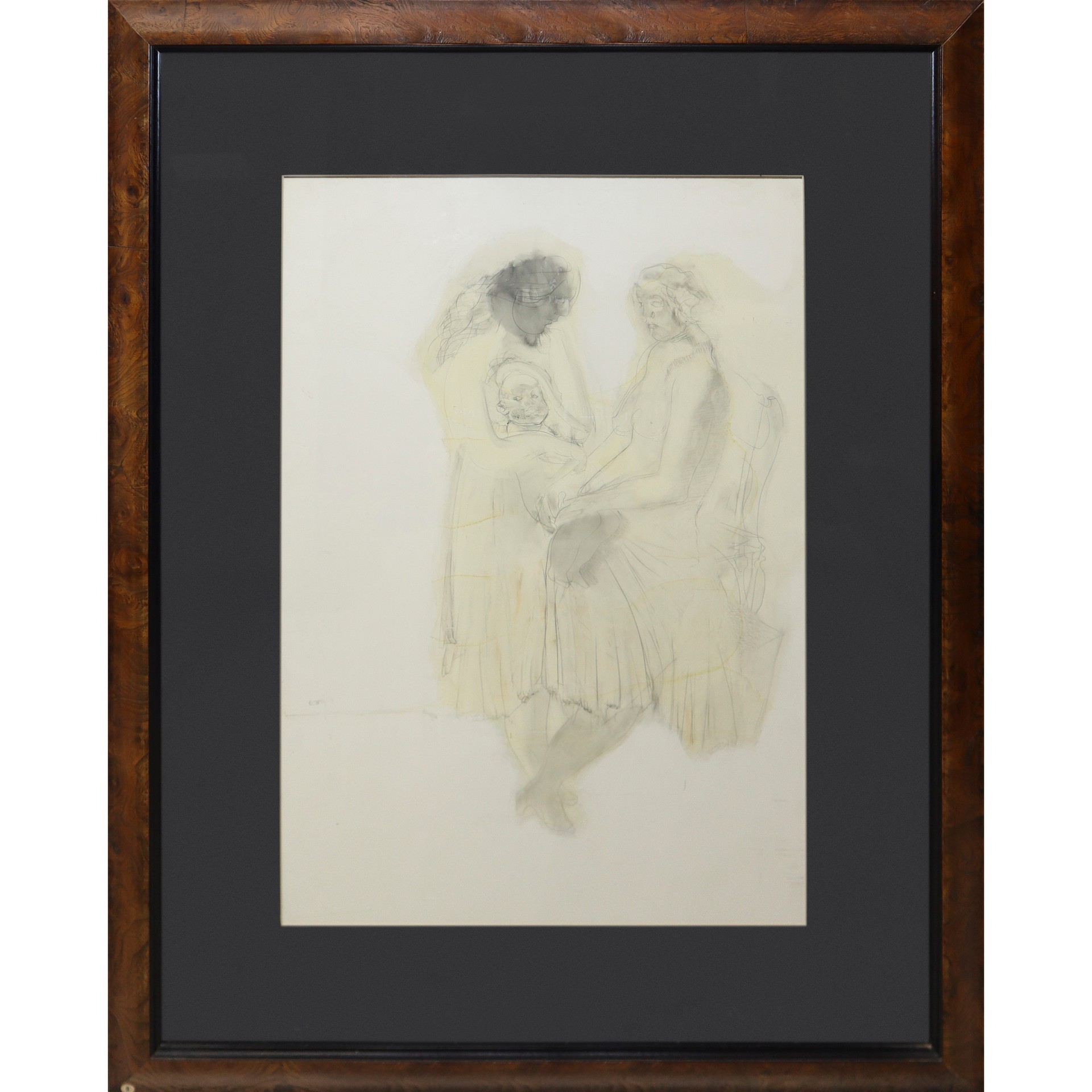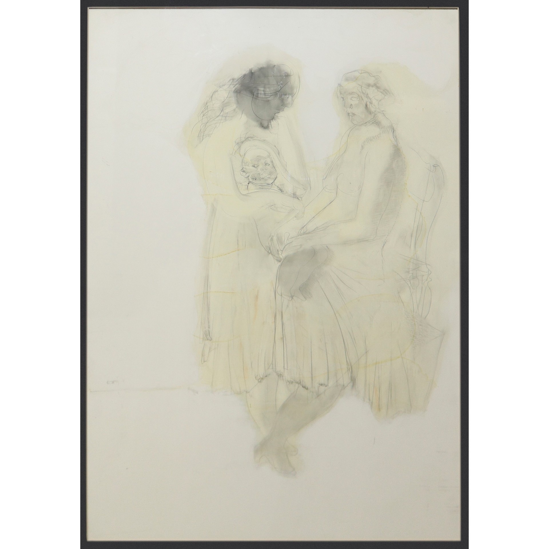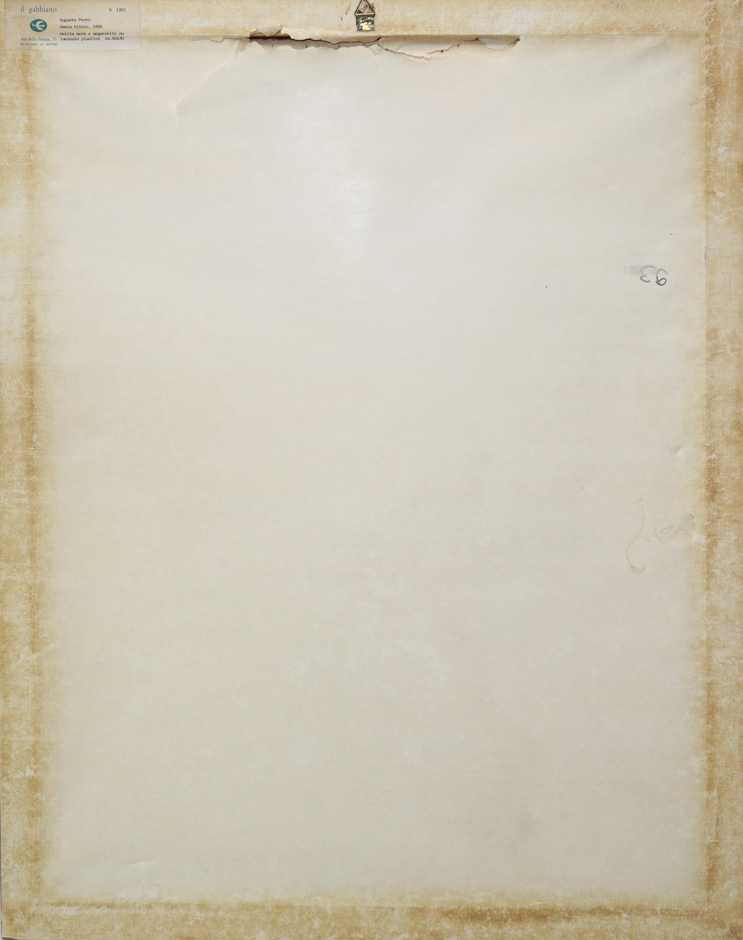 Perez Augusto (Messina 1929-Napoli 2000) - Senza titolo, 1988 cm 60x40 in cornice cm 66x67 Matita nera e acquerello su laminato plastico Sul retro etichetta descrittiva della Galleria Il Gabbiano, Roma