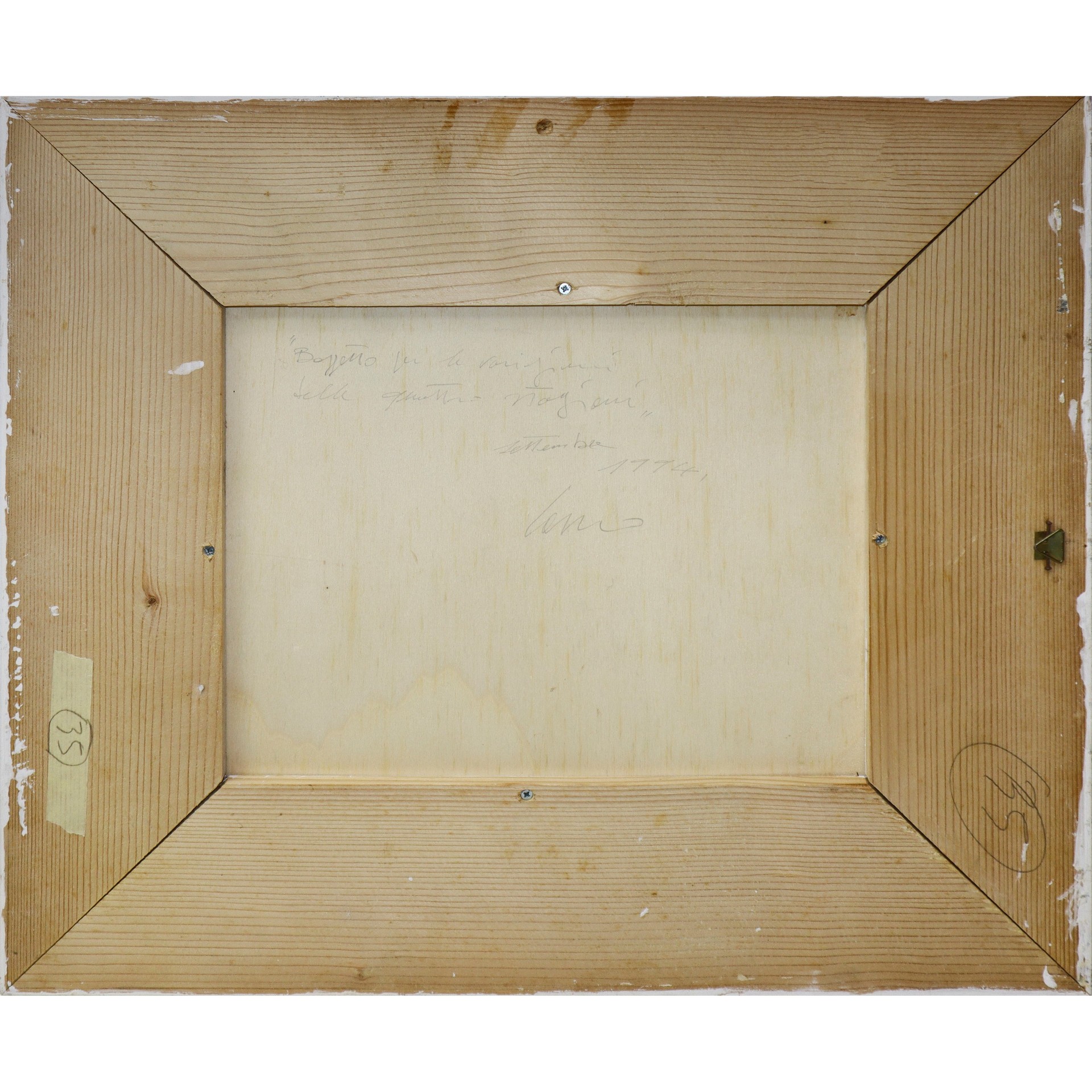 Ninni Sacco (Palermo 1943) - Bozzetto per le ...., 1994 cm 28x35 in cornice 45x52 Olio su tavola Firmato e dedicato sul fronte. Sul retro firmato , datato e titolato