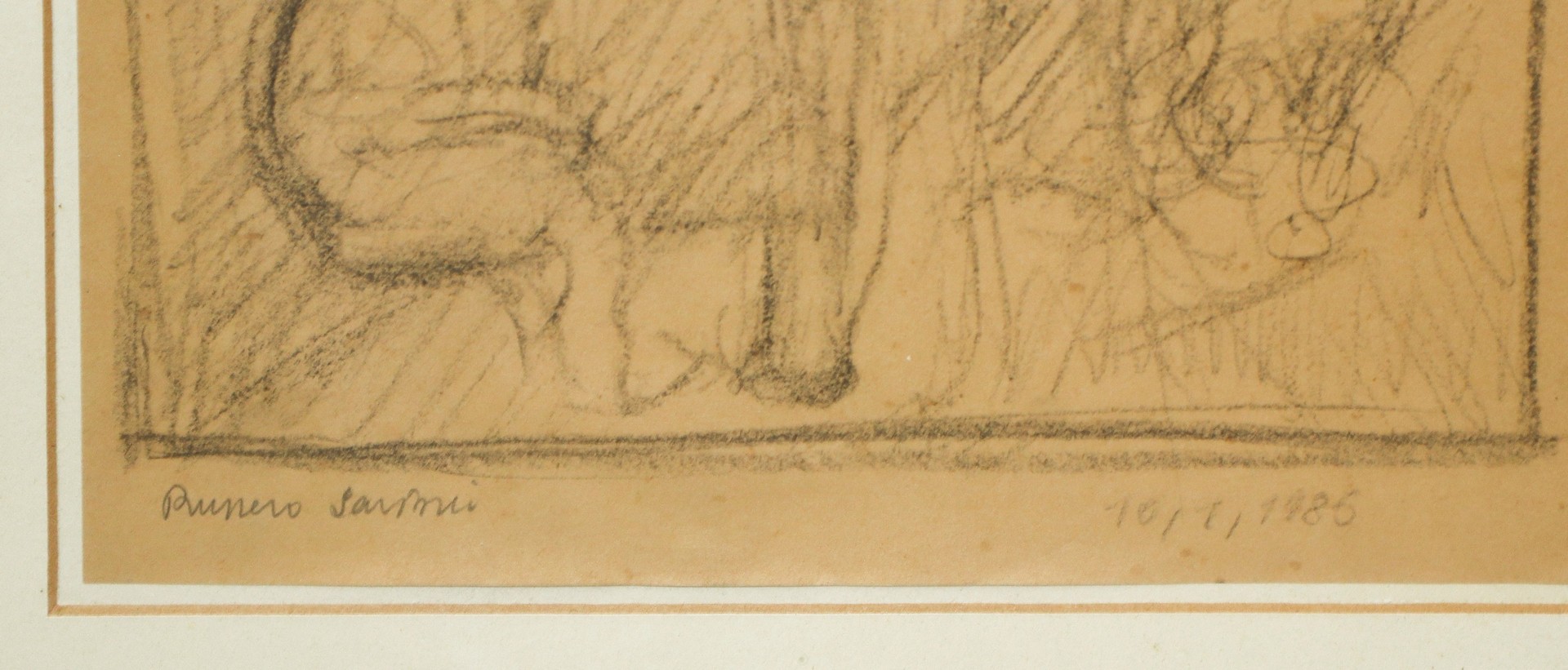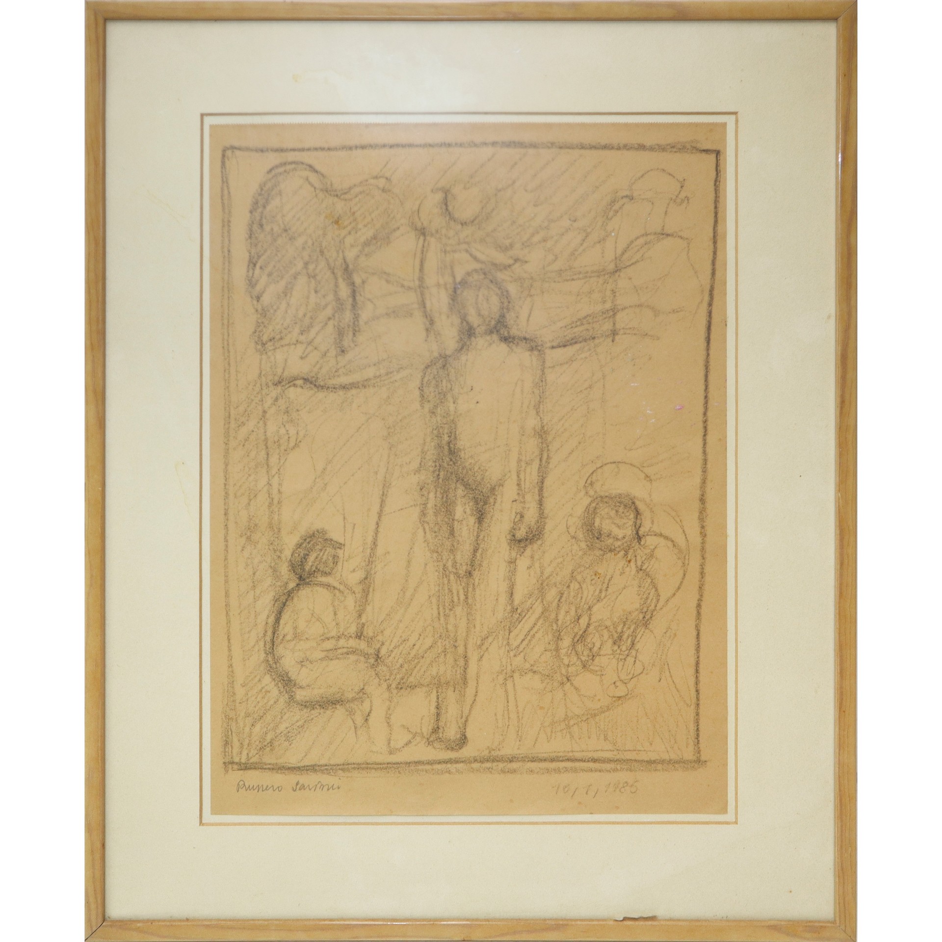 Ruggero Savinio (Torino 1934) - Figure in controluce, 10.1.1986 cm 34x22, in cornice cm 78x58 tecnica mista su carta Etichetta descrittiva della Galleria L'Androne-Scicli al retro.