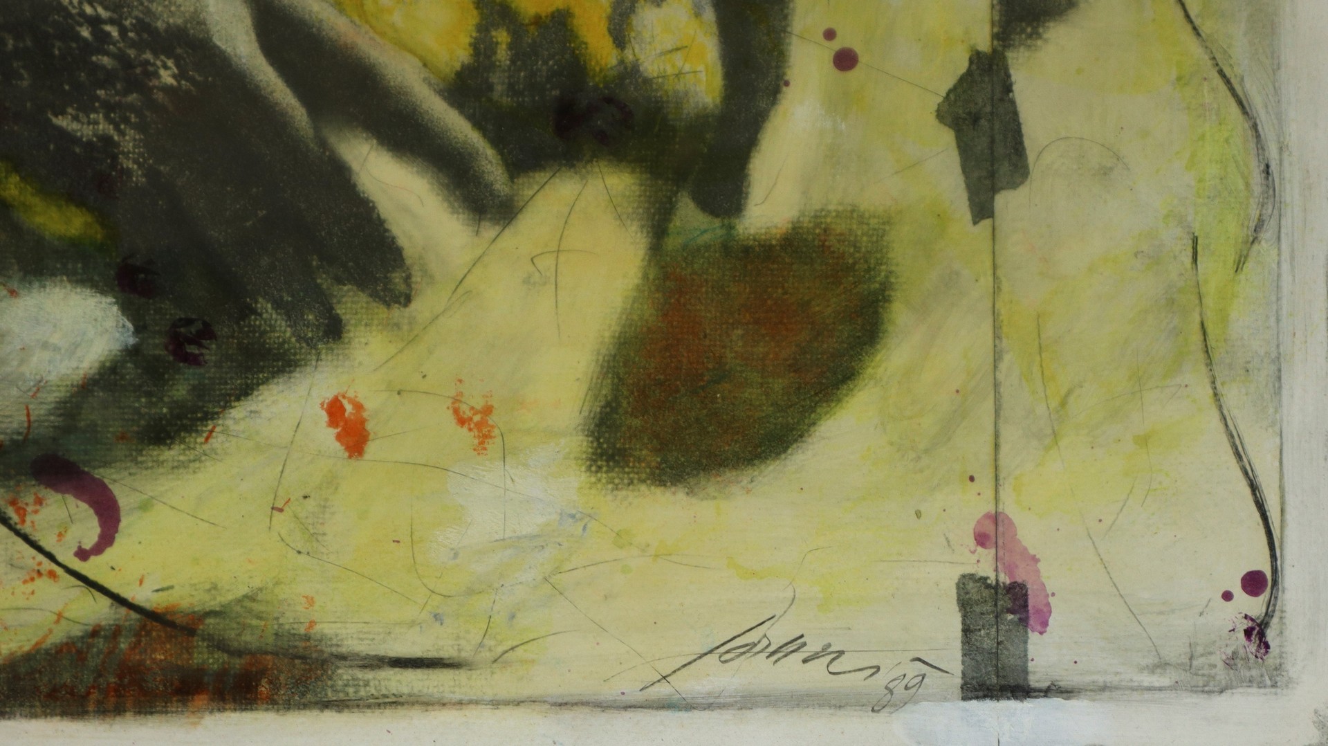 Franco Sarnari (Roma 1933) - Ebrezza, 1989 H cm 63x77 - in cornice H cm 74x88 Olio su tela Firmato e datato in basso a destra. Titolato in basso a sinistra. Titolato, datato e firmato sul retro.