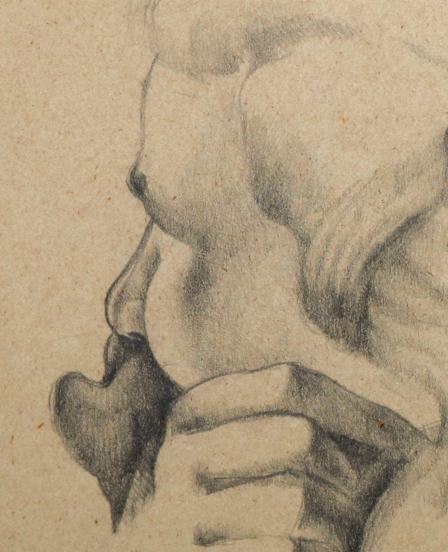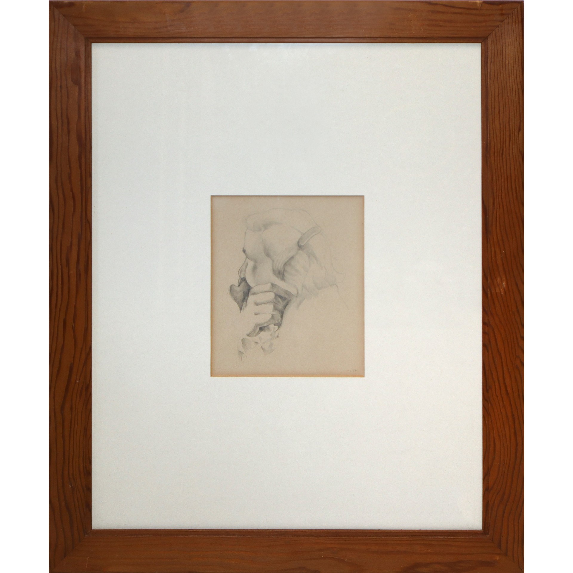 Giuseppe Colombo (Modica 1971) - Ritratto di M.B., 1997 H cm 18x15,5 - in cornice H cm 58x48 Matita su carta Iniziali e data in basso a destra.