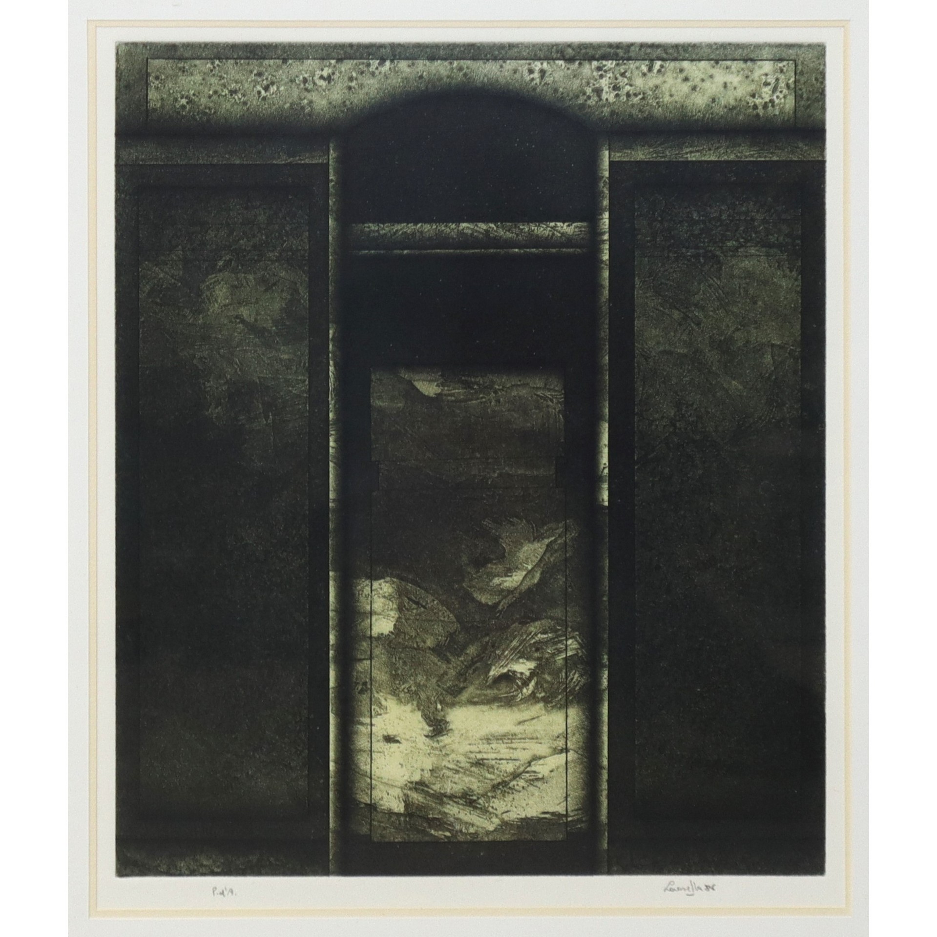 Silvio Lacasella (Trento 1956) - Senza titolo H cm 27x22 - In cornice H cm 52x37 Incisione Prova d'Autore.