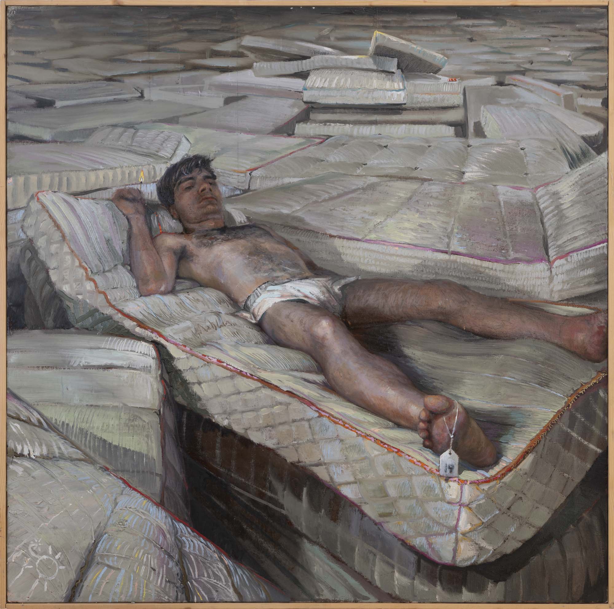 PAUL BEEL (Ohio, 1970) Super bad 2001 olio su tela di lino cm. 100x100 sigla...