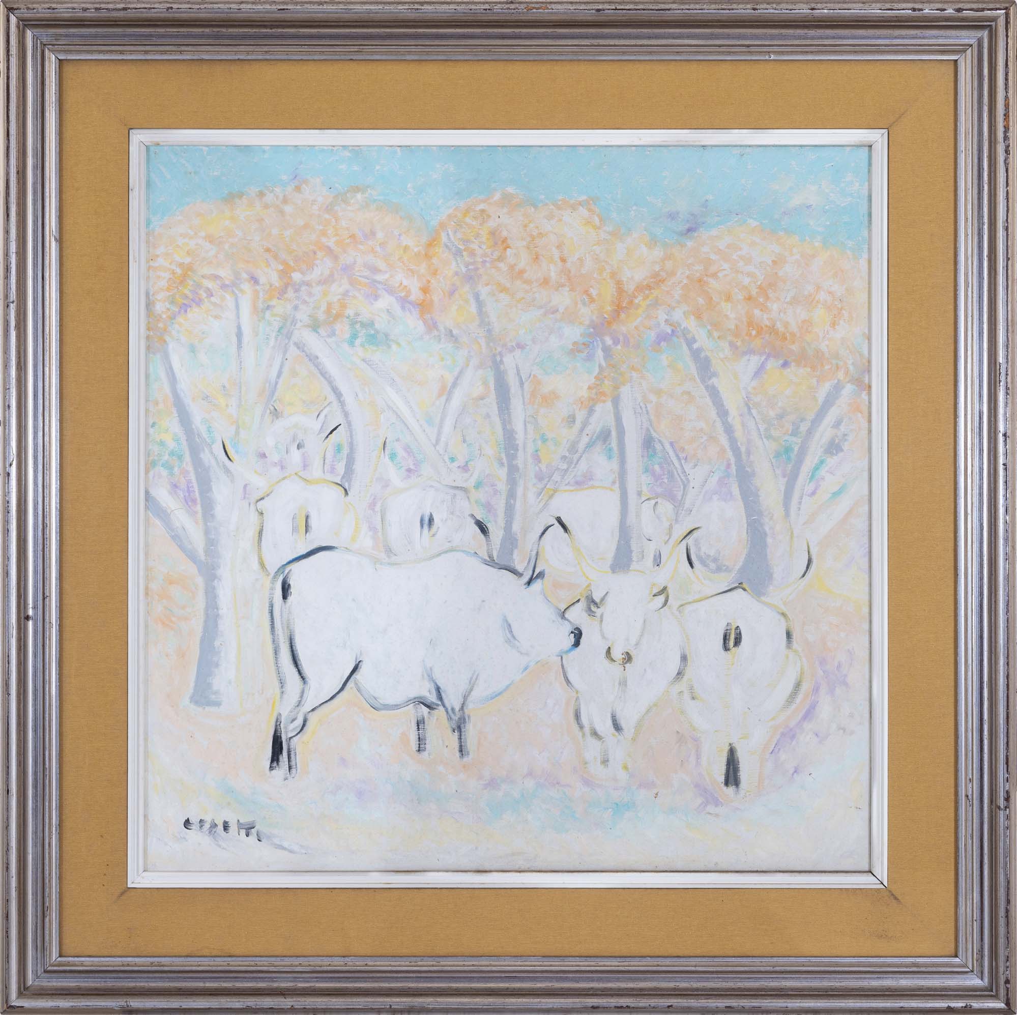 GIUSEPPE CESETTI (Tuscania, 1902 - Viterbo, 1991) Buoi al pascolo olio su...