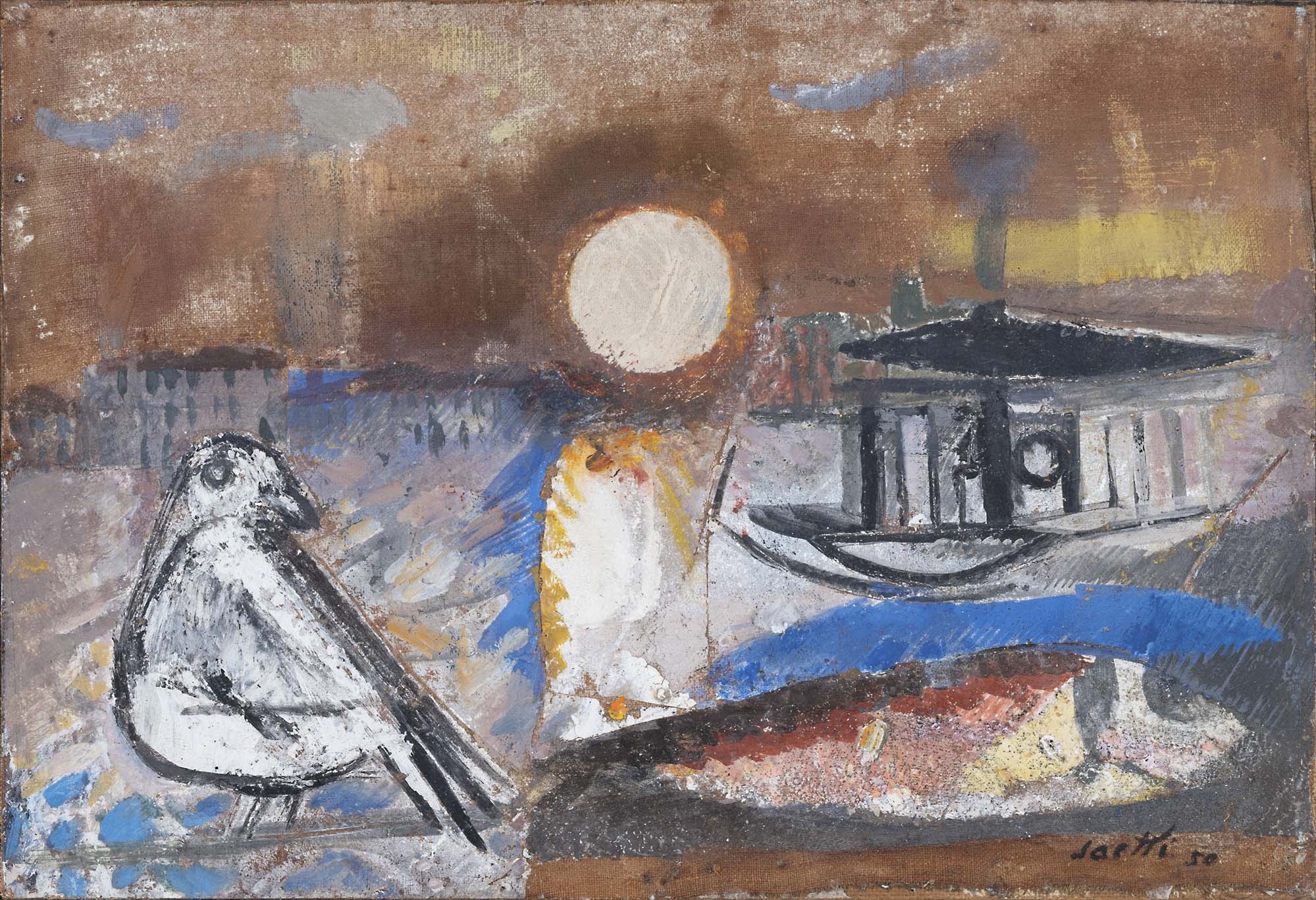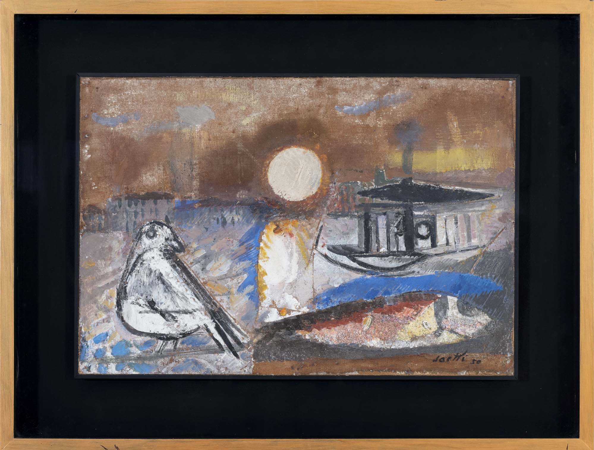 BRUNO SAETTI (Bologna , 1902 - Venezia, 1984) Colomba e pesce 1950 olio su...