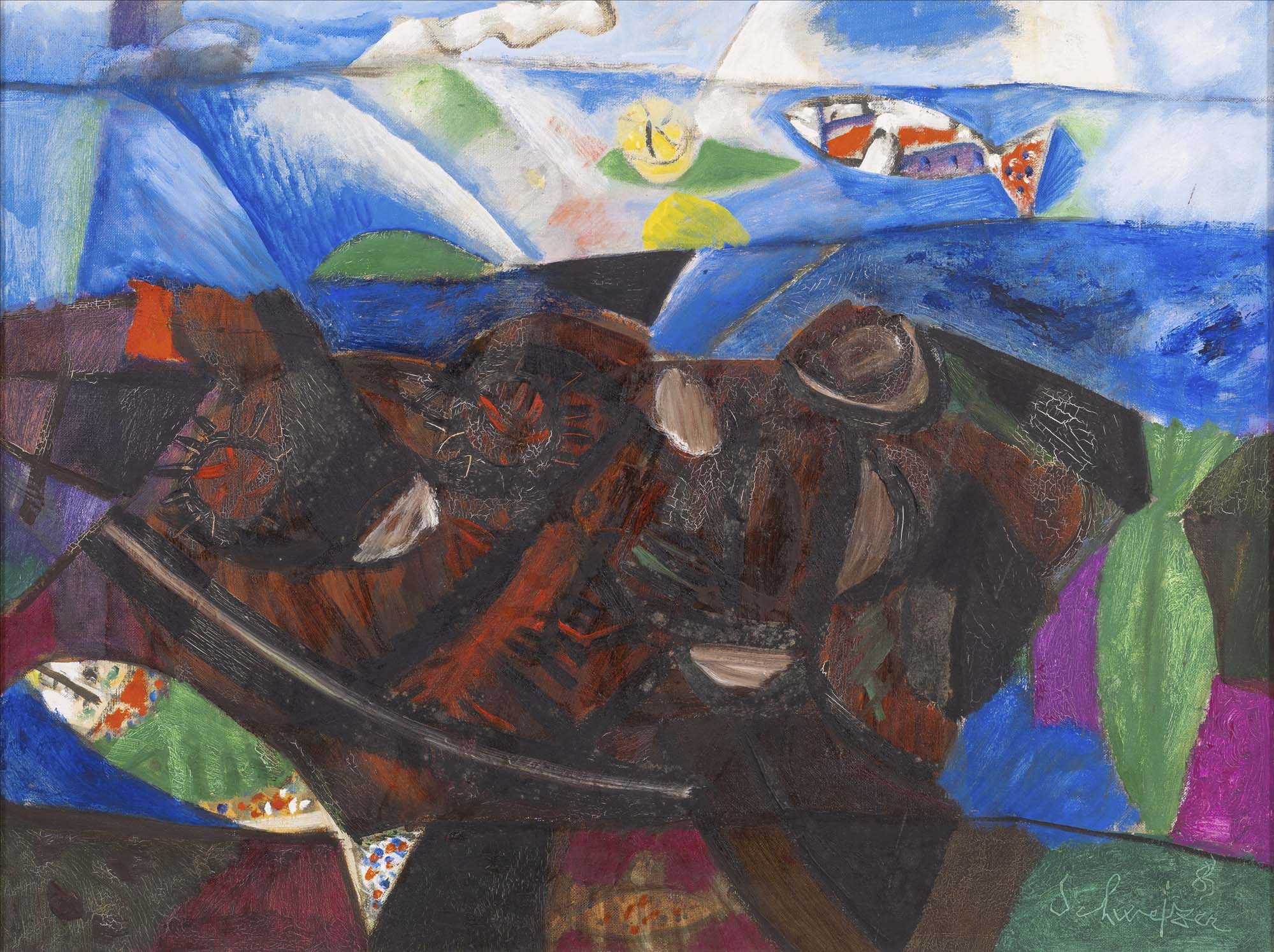 RICCARDO SCHWEIZER (Mezzano 1925 - 2004) Ricci e pesci al mare 1983 olio su...