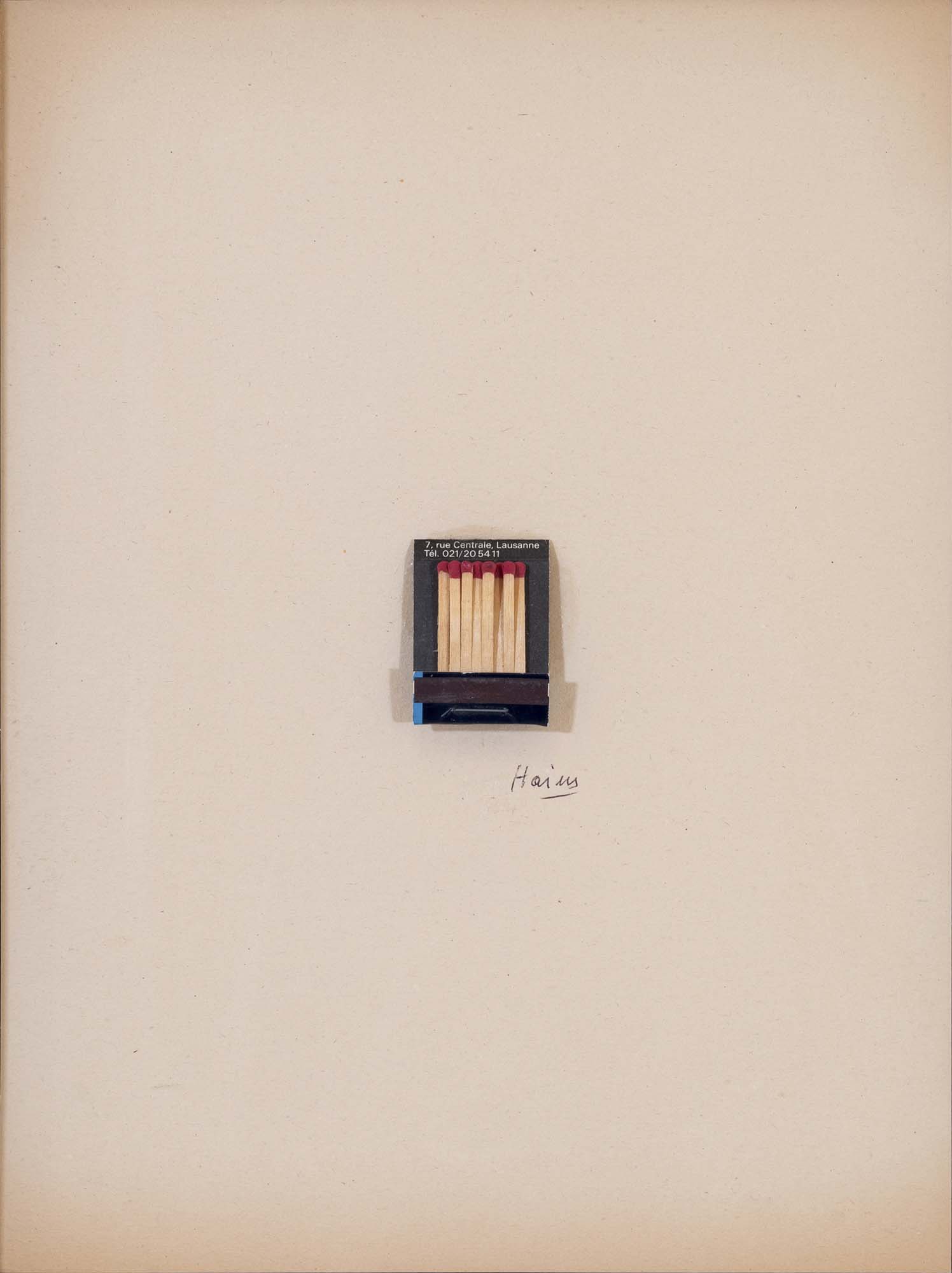 RAYMOND HAINS (Saint Brieuc, 1926 - 2005) Saffa 1974 Fiammiferi su cartoncino...