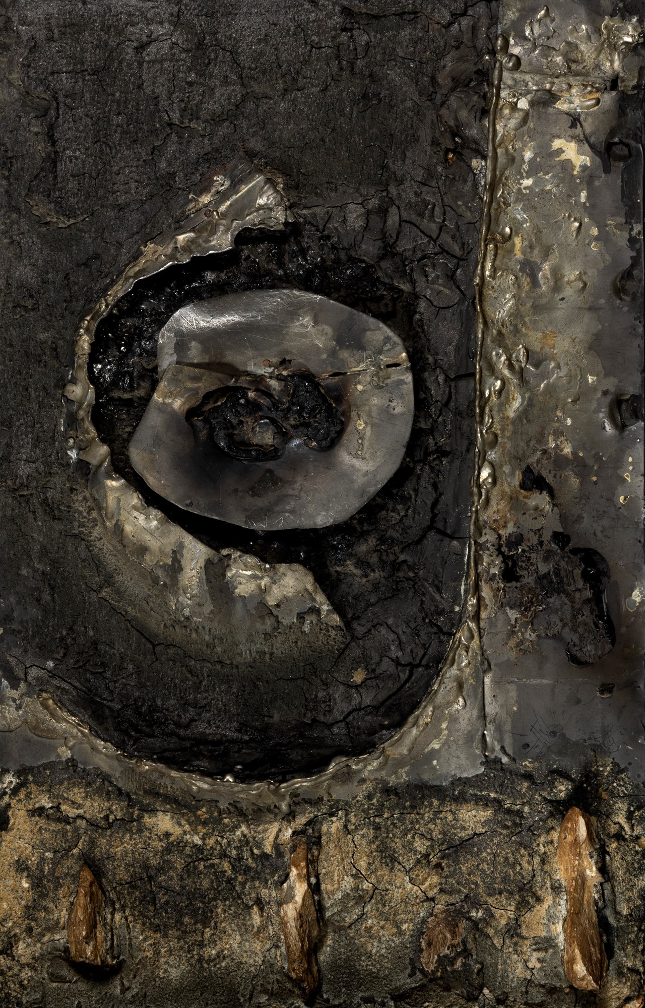 piombo, stagno, legno e amalgama di grafite su tavola
