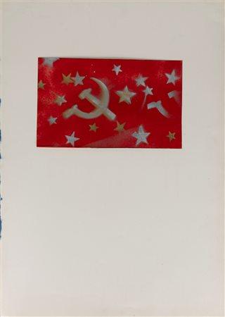 vernice a spruzzo e collage su carta