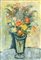 Michel Fingesten, Fiori. Acquatinta a colori. mm 432x300. Firmata a penna e inchiostro di china nero in basso a destra. Controfirma, tecnica e titolo a penna e inchiostro di china nero al verso. Timbro di Cav. Giovanni Botta di Milano al verso. (1)
