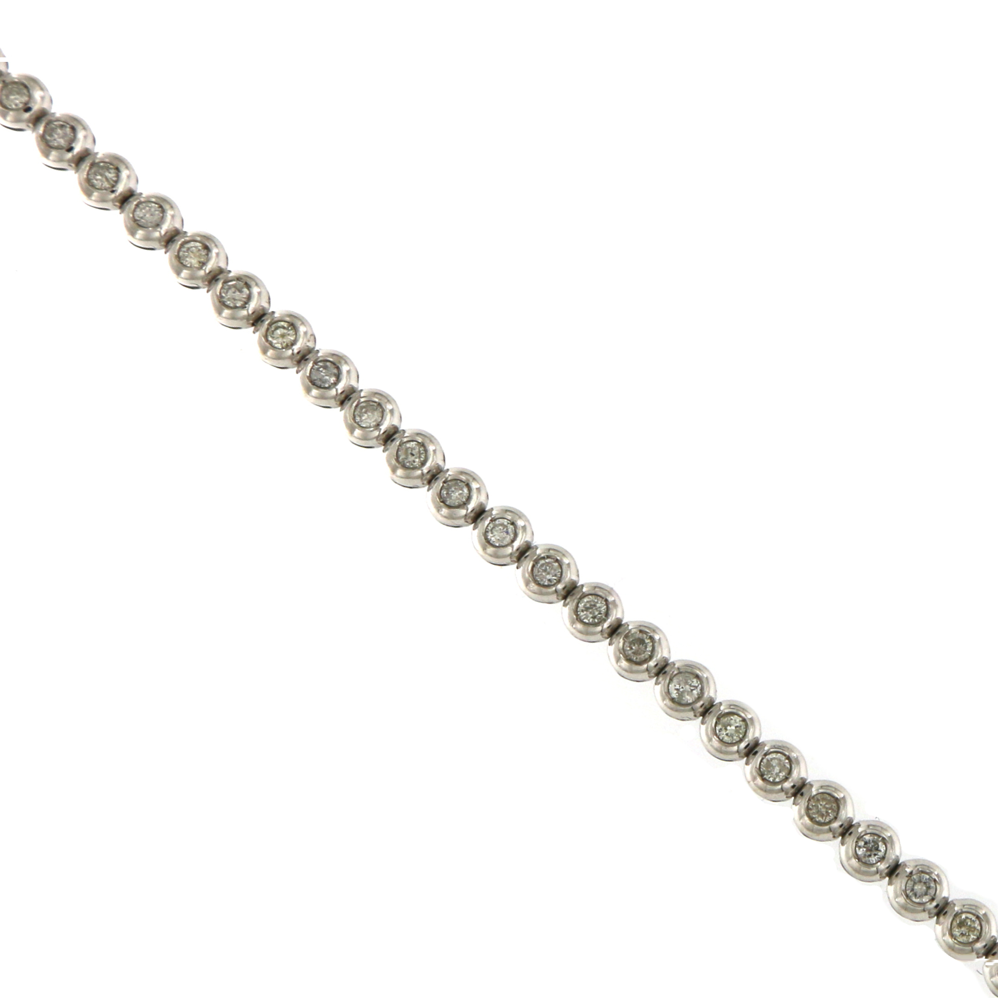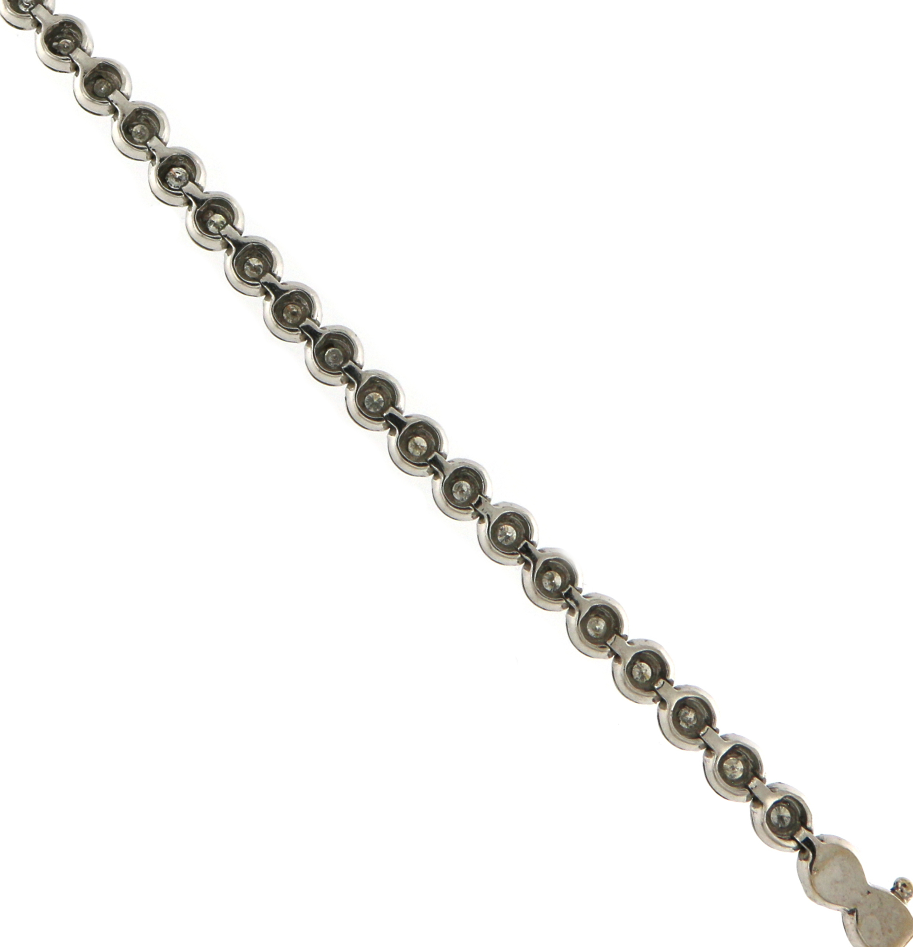 Bracciale tennis in oro bianco 18 kt con montatura a cipollina con diamanti taglio a brillante per complessivi ct 2,60, lunghezza cm 18.5, grammi 19.40