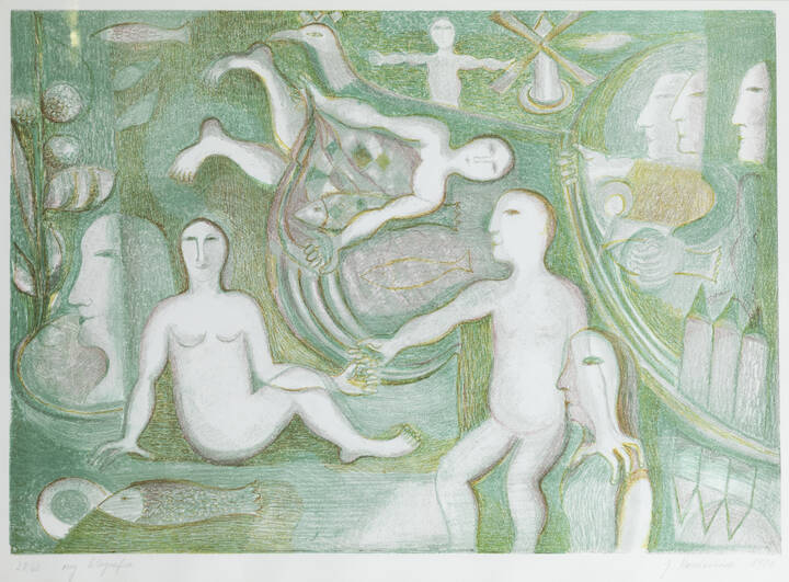Opera firmata e datata in basso a destra, iscritta orig.litografia e inumerata in basso a sinistra (a matta sul foglio)