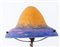 Lampada in bronzo dorato con cappello in pasta di vetro policroma. Base in...