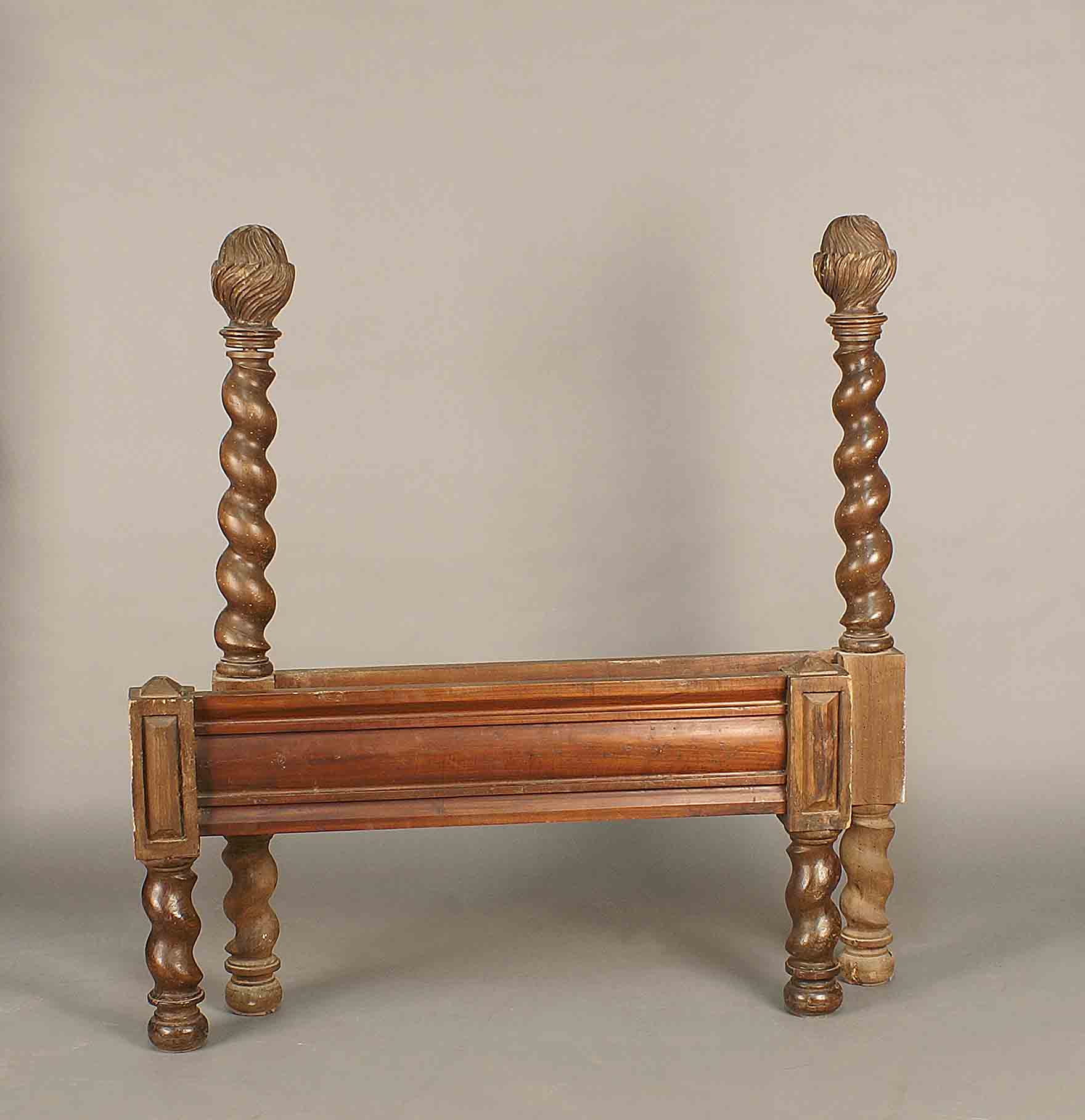 Letto singolo in noce con testata delimitata da due colonnine a tortiglione,...