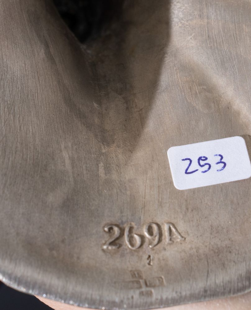 AA.VV, Art Nouveau Domestic Metalwork from Württembergische MetallwarenFabrik, 1906, Antique Collectors' Club, tavola del catalogo 1906 n. 113, n. 269/2 e 269a/2. Cm 27,5x25x14.