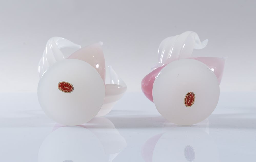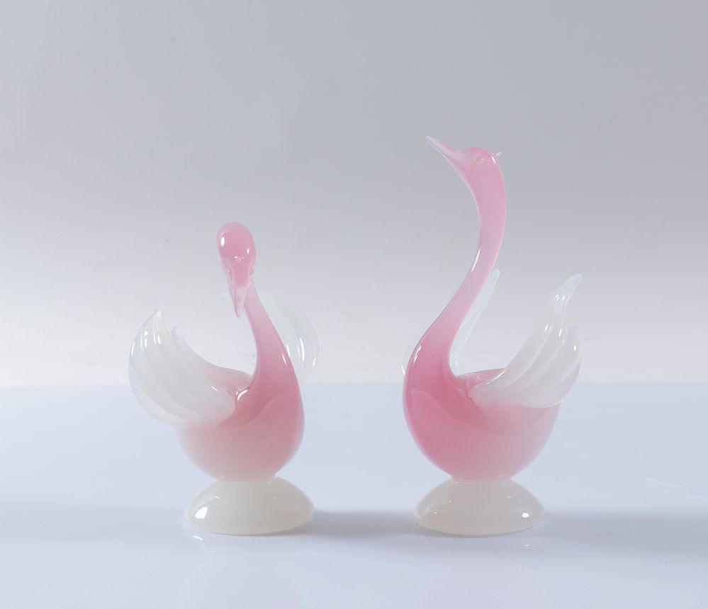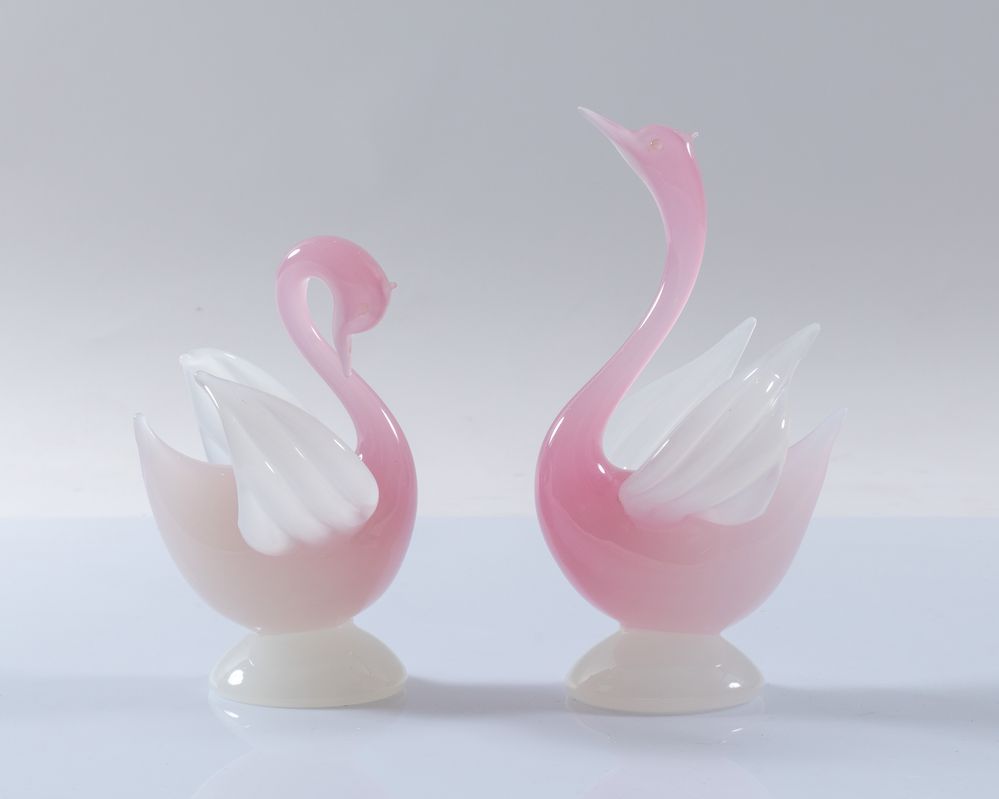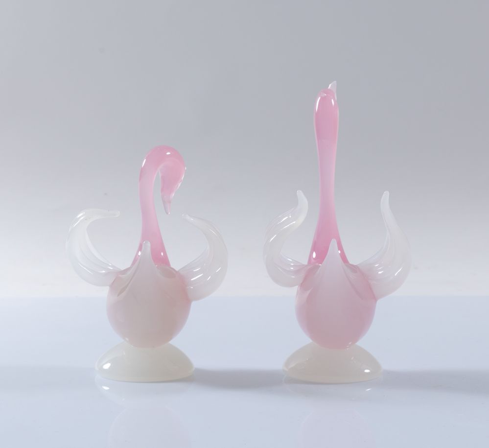 ARCHIMEDE SEGUSO Lotto composto da due sculture in vetro a guisa di cigni. Prod. Venini, Italia, anni '50. Rispettivamente di cm 18x12,5x11 e cm 23x12,5x12.