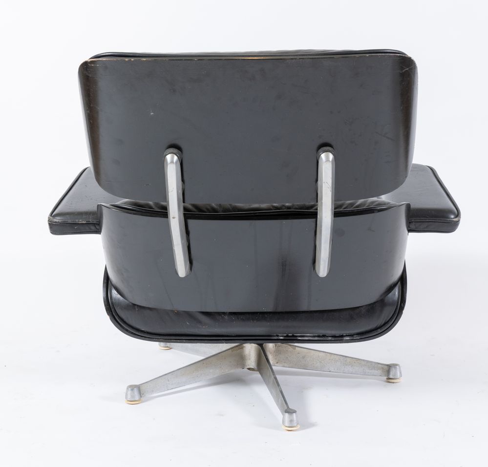 HERMAN MILLER Poltrona, modello 670 in palissandro scuro e pelle nera (1950 -...