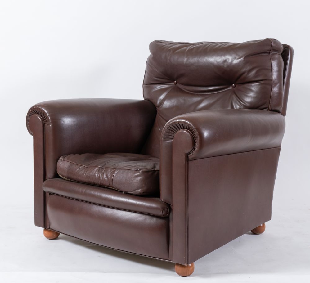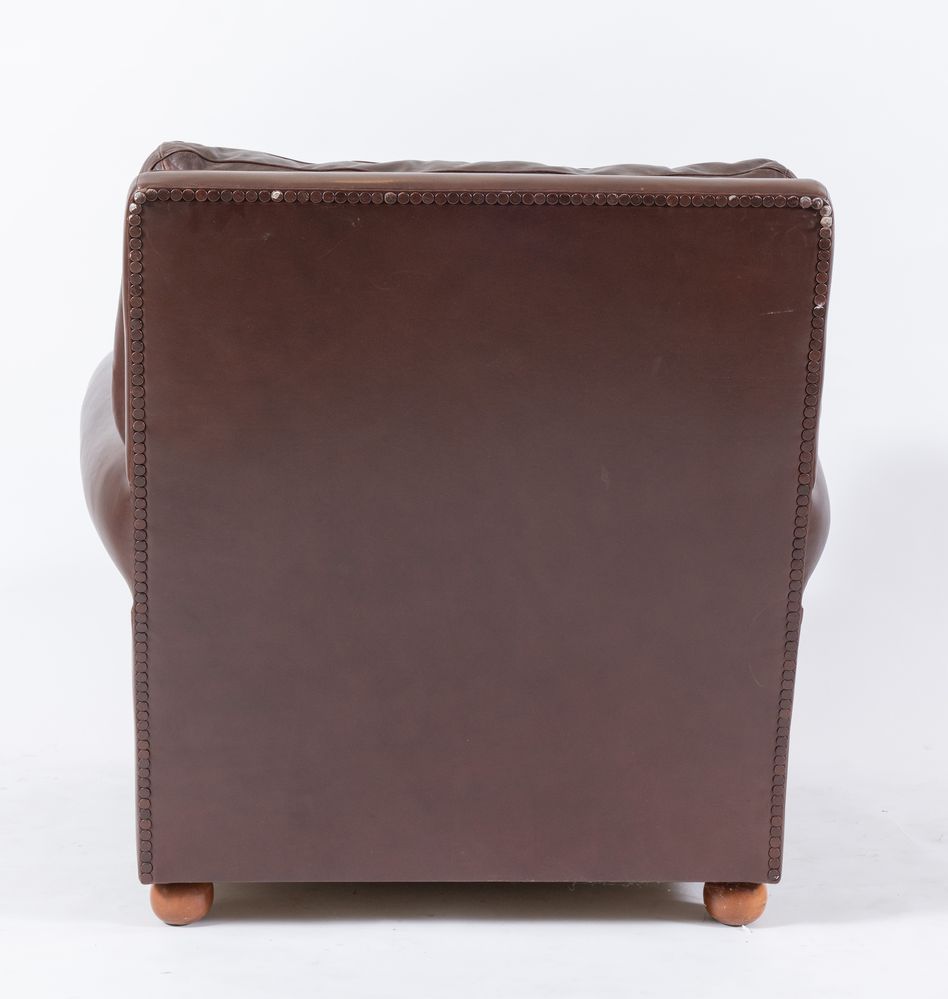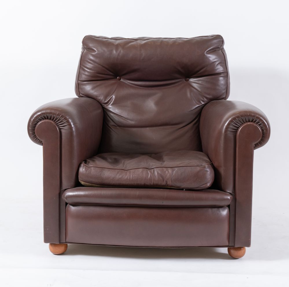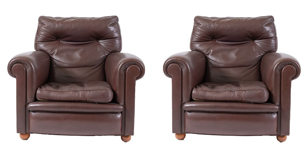 POLTRONA FRAU Coppia di poltrone in pelle marrone. Cm 87x95x88. Recano...
