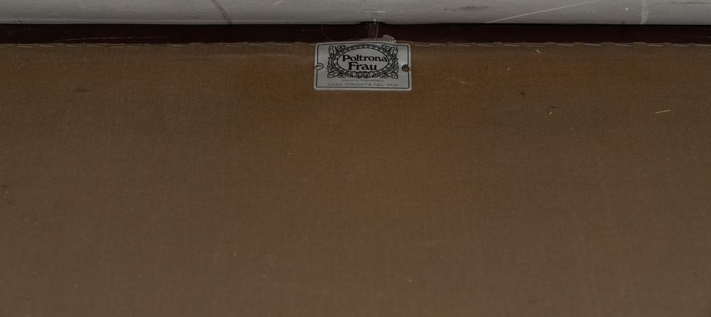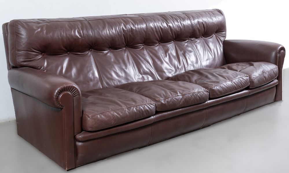POLTRONA FRAU Divano in pelle marrone. Cm 82x252x84. Reca etichetta sotto la...