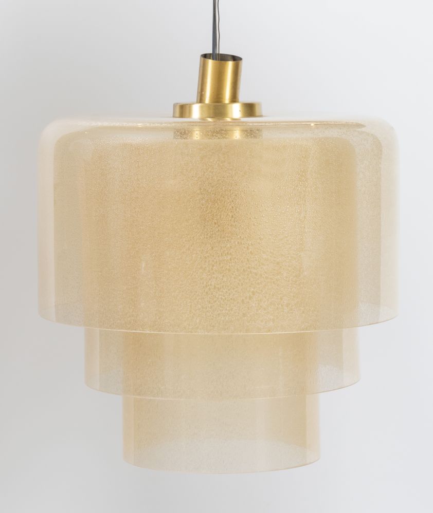 CARLO NASON, attr. Lampada da soffitto con struttura in metallo e paralume in vetro. Lievi difetti. Prod. Mazzega, Italia, 1970 ca. Cm 80x48x48.