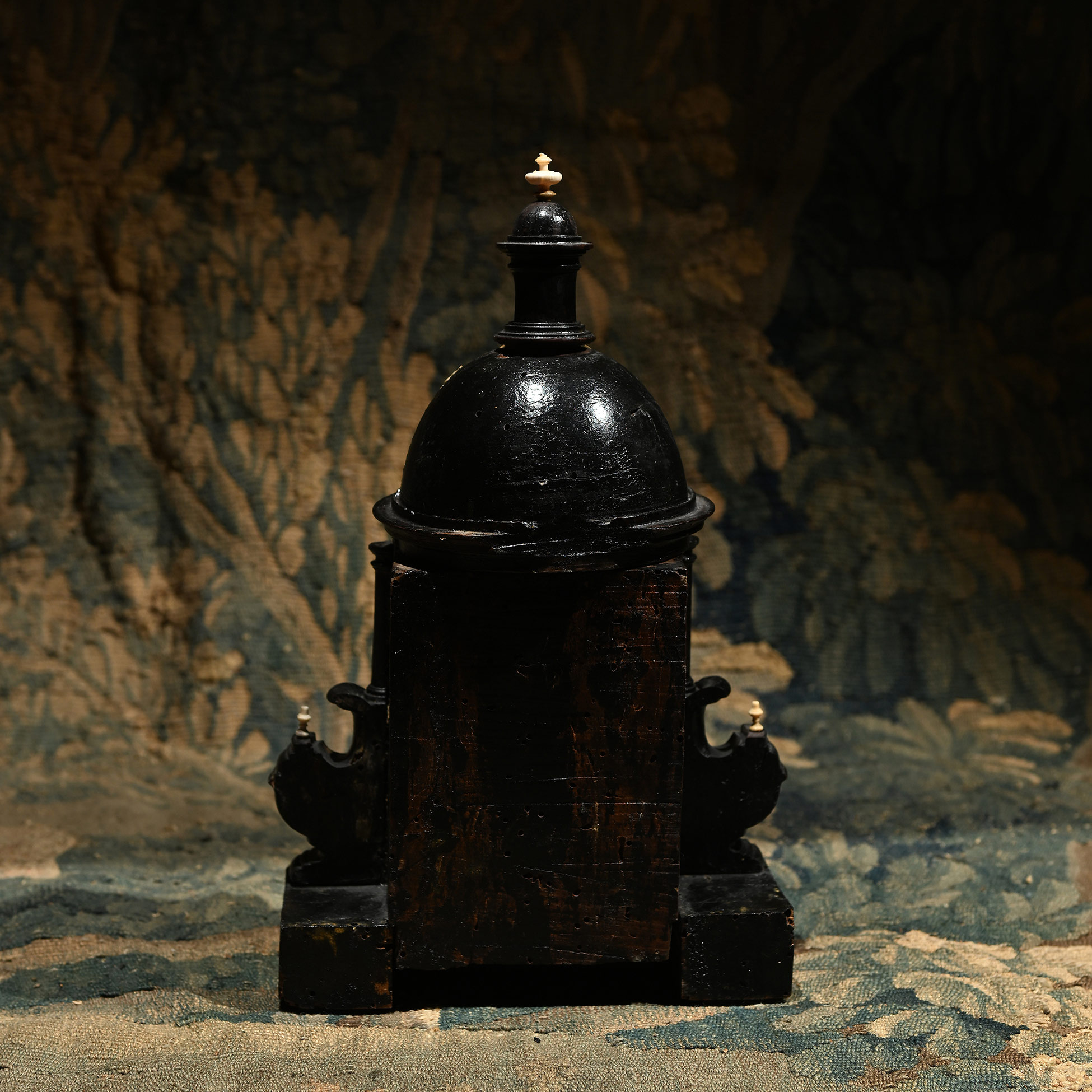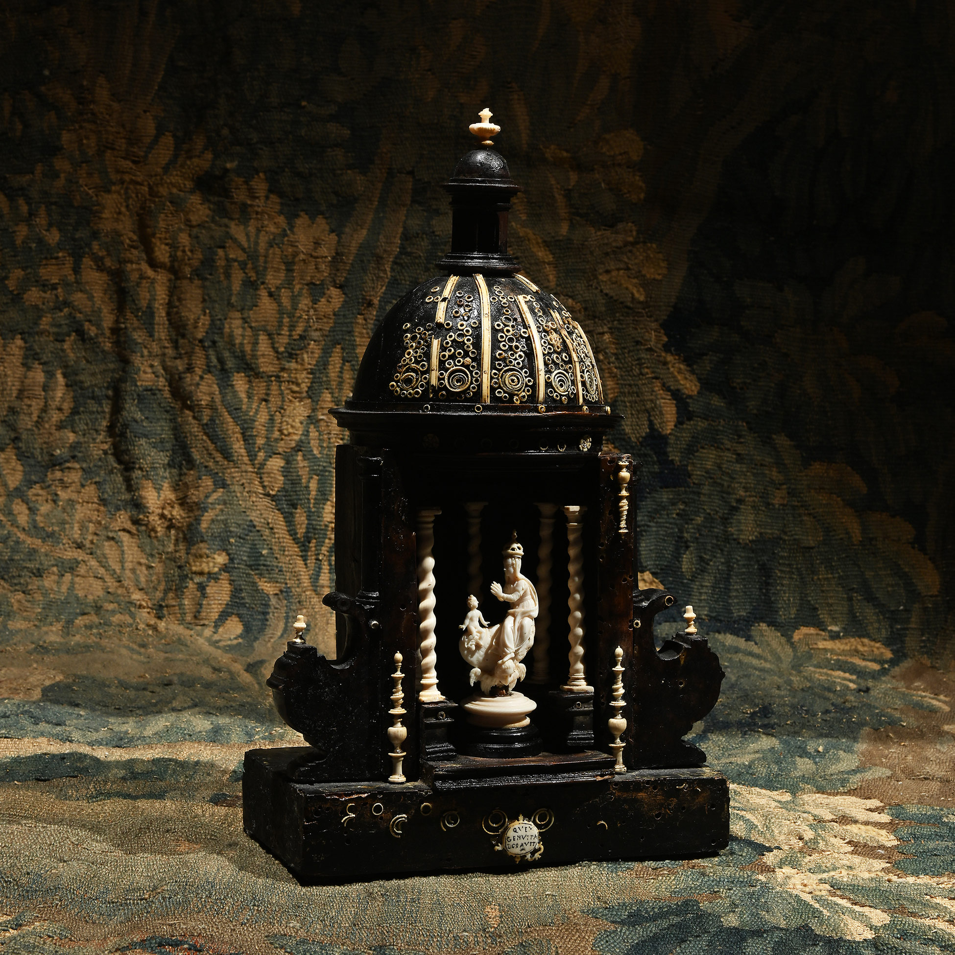 Tempietto con scultura raffigurante la Madonna della Ghiara, manifattura lombarda del XVII secolo Il presente lotto è accompagnato da documentazione CITES. Dimensioni complessive 31x19x10