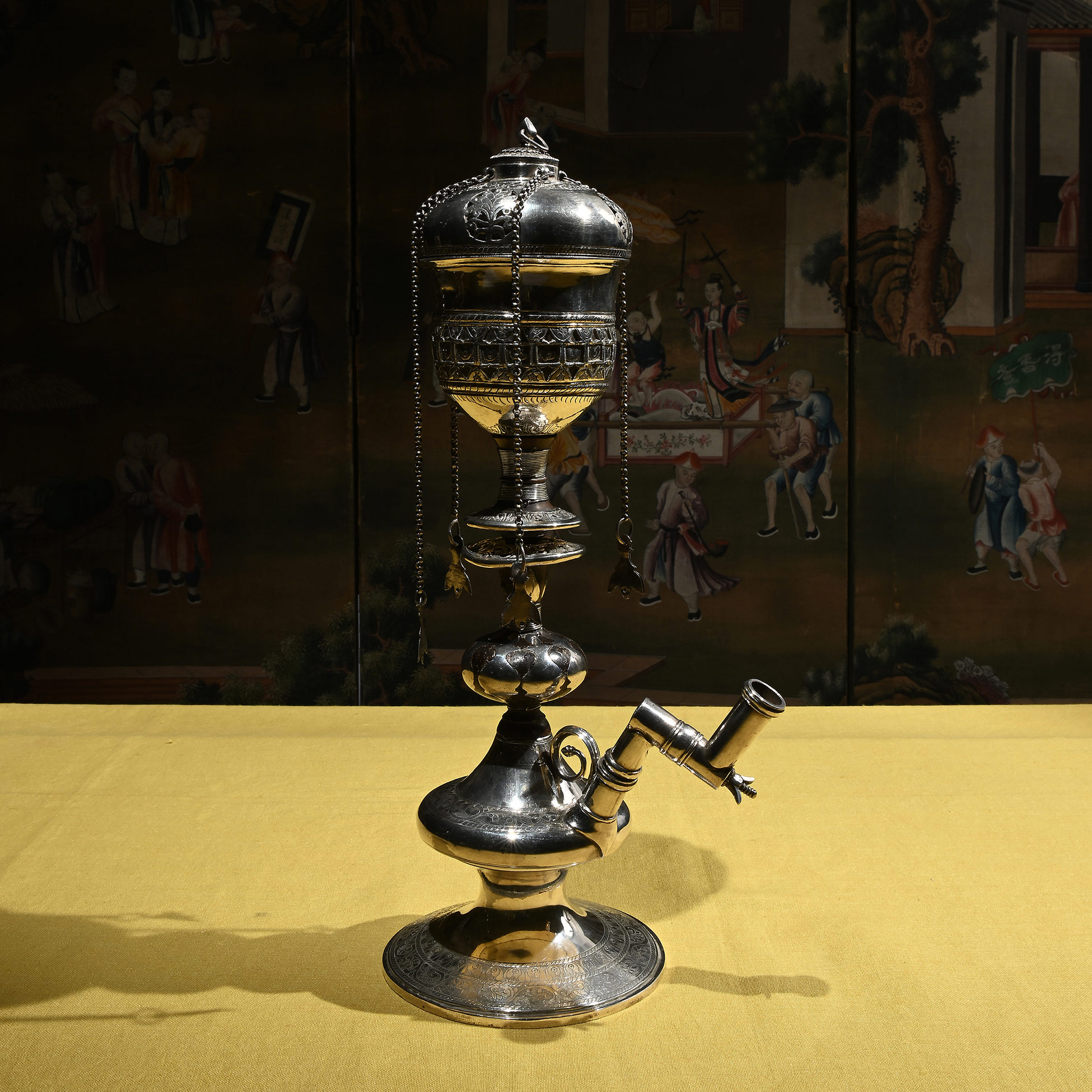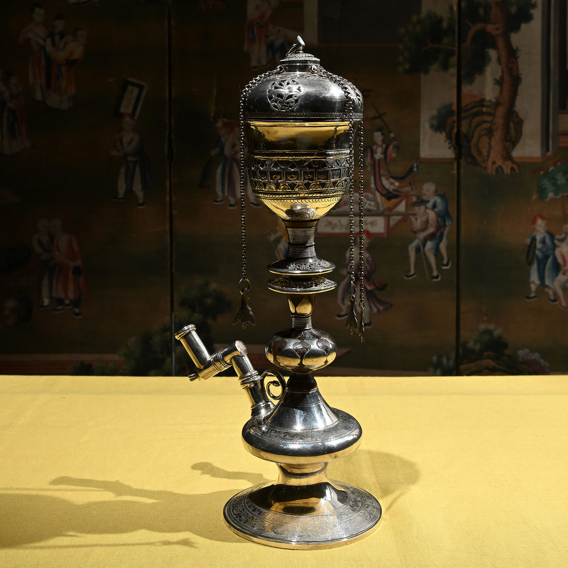 Narghile in legno e argento, manifattura orientale del XIX secolo
