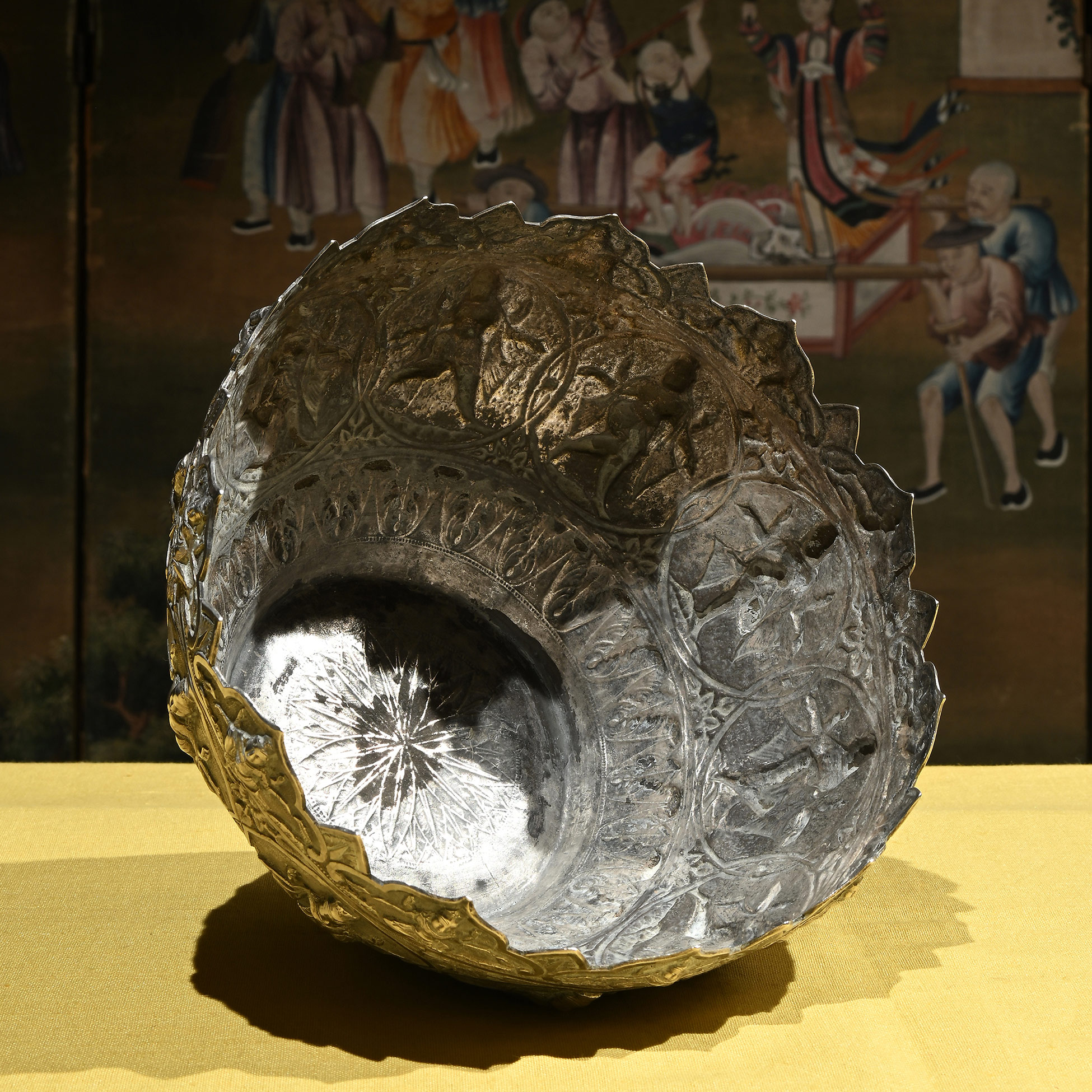 Centrotavola in argento, India inizi XX secolo Dimensioni complessive 13x21x21 cm., peso complessivo gr. 490.