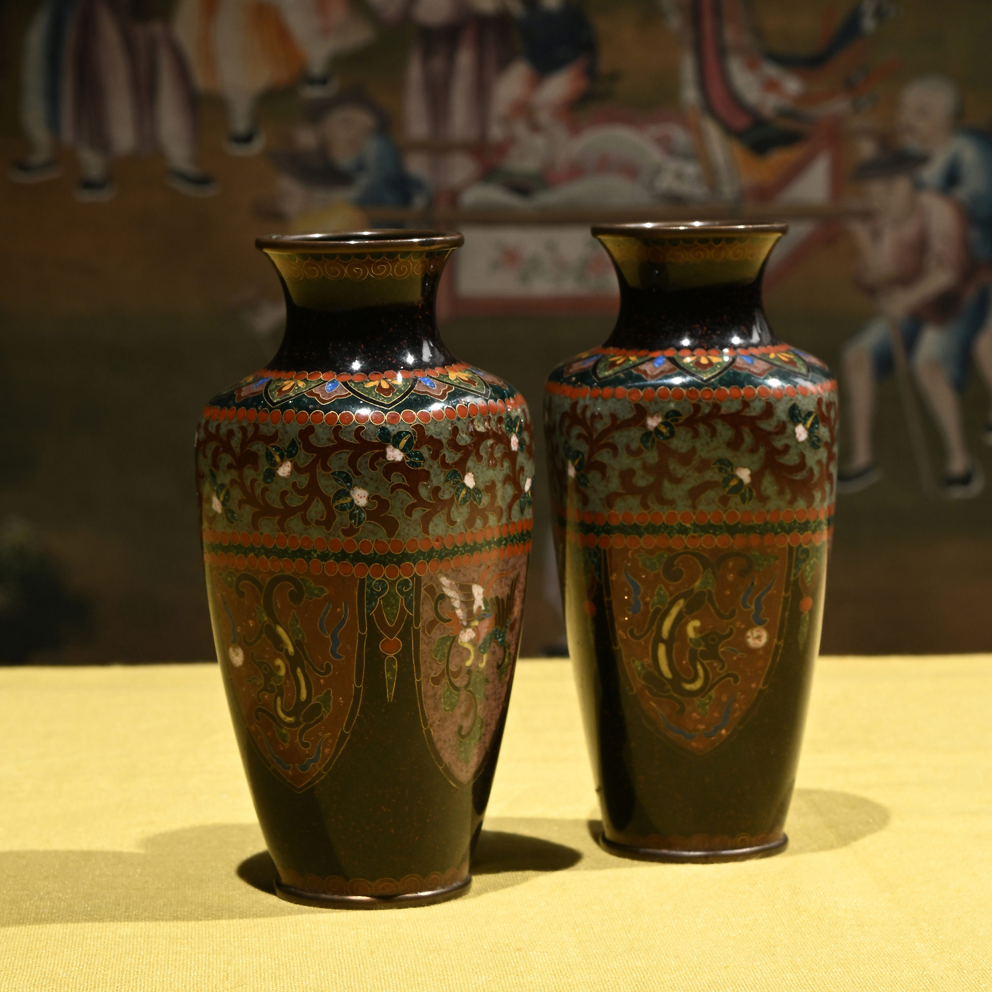 Coppia di vasi in smalto cloisonne, Giappone fine del XIX secolo