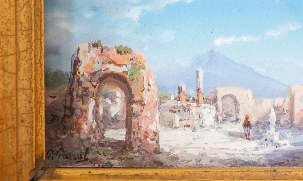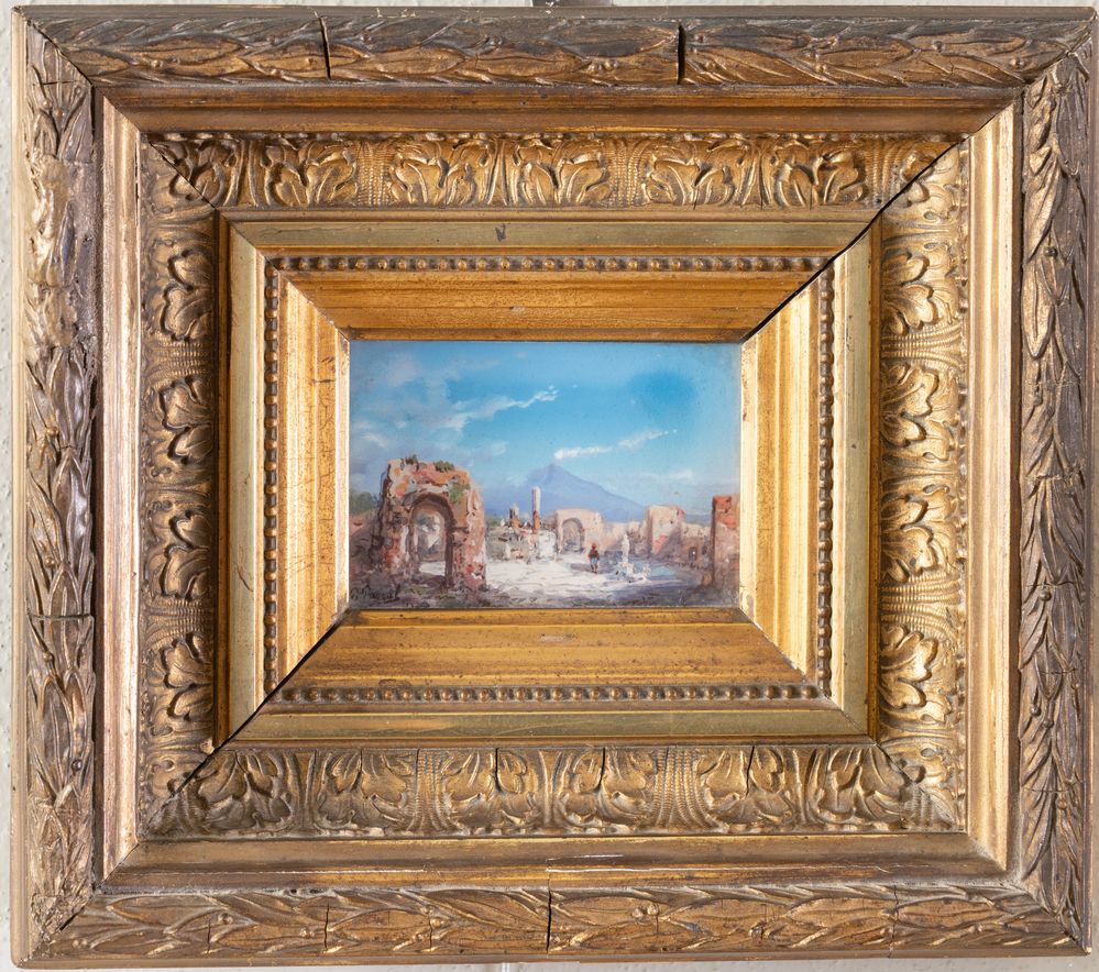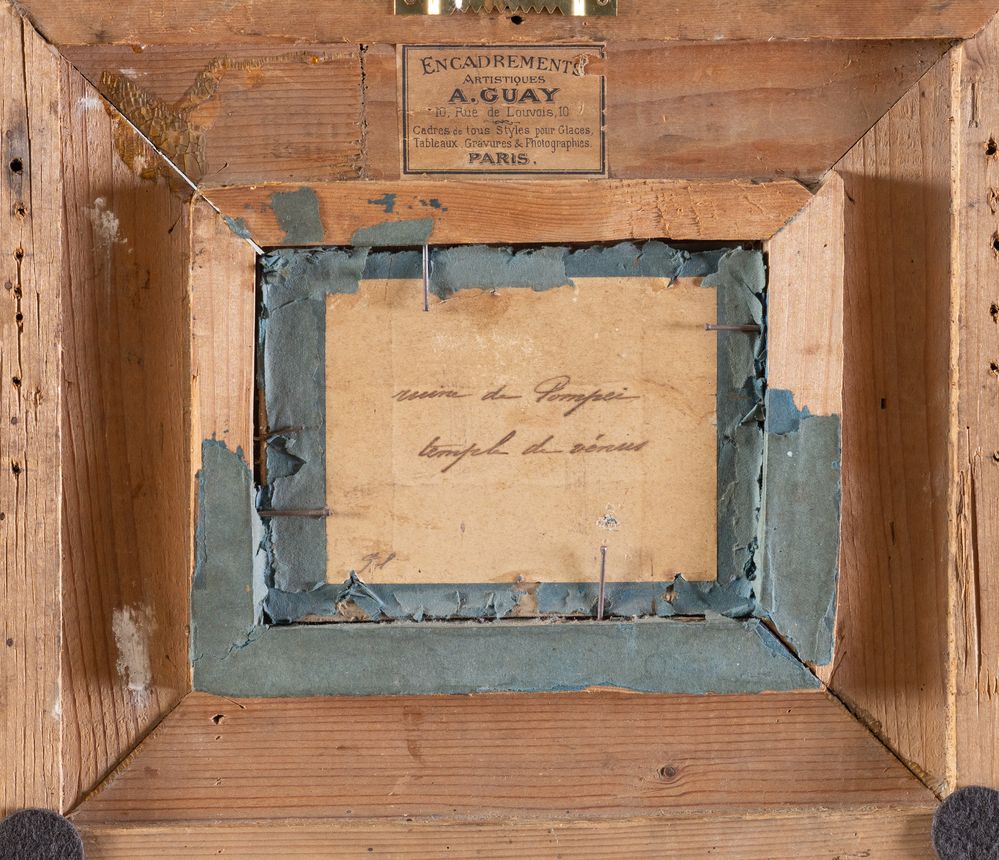 PAUL PASCAL (Saint-Paul-sur-Ternoise 1880 - Caen 1968) "Ruine de Pompei - temple du Vénus". Olio su tavola. Cm 9,5x12,5. Opera firmata in basso a sinistra P. Pascal. Al retro opera intitolata Ruine de Pompei. Temple de Vénus.