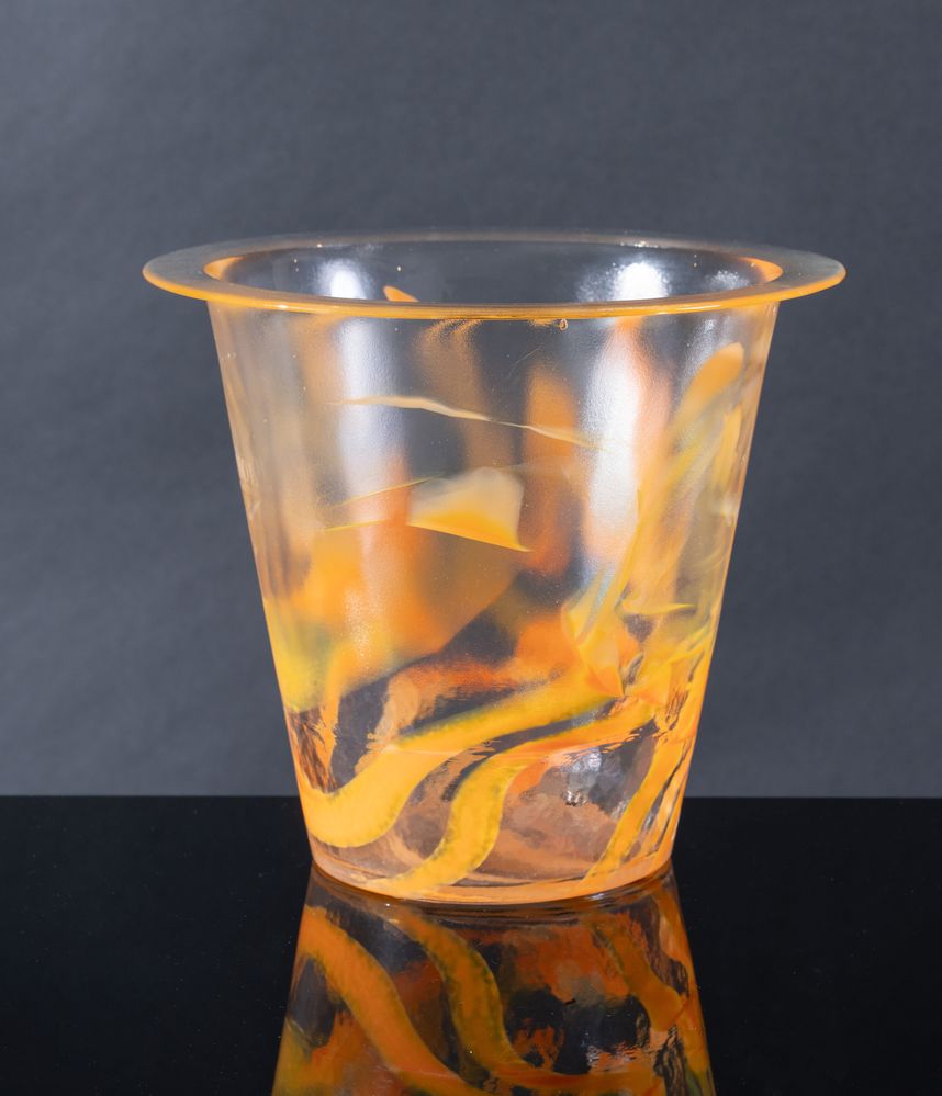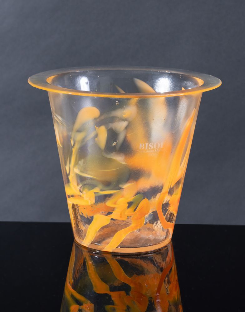 Secchiello per ghiaccio in vetro con decorazione arancione. Cm 20,5x diametro...