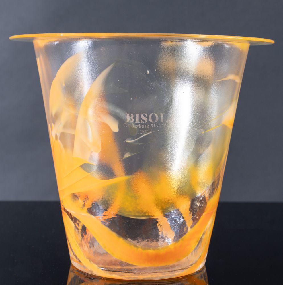 Secchiello per ghiaccio in vetro con decorazione arancione.