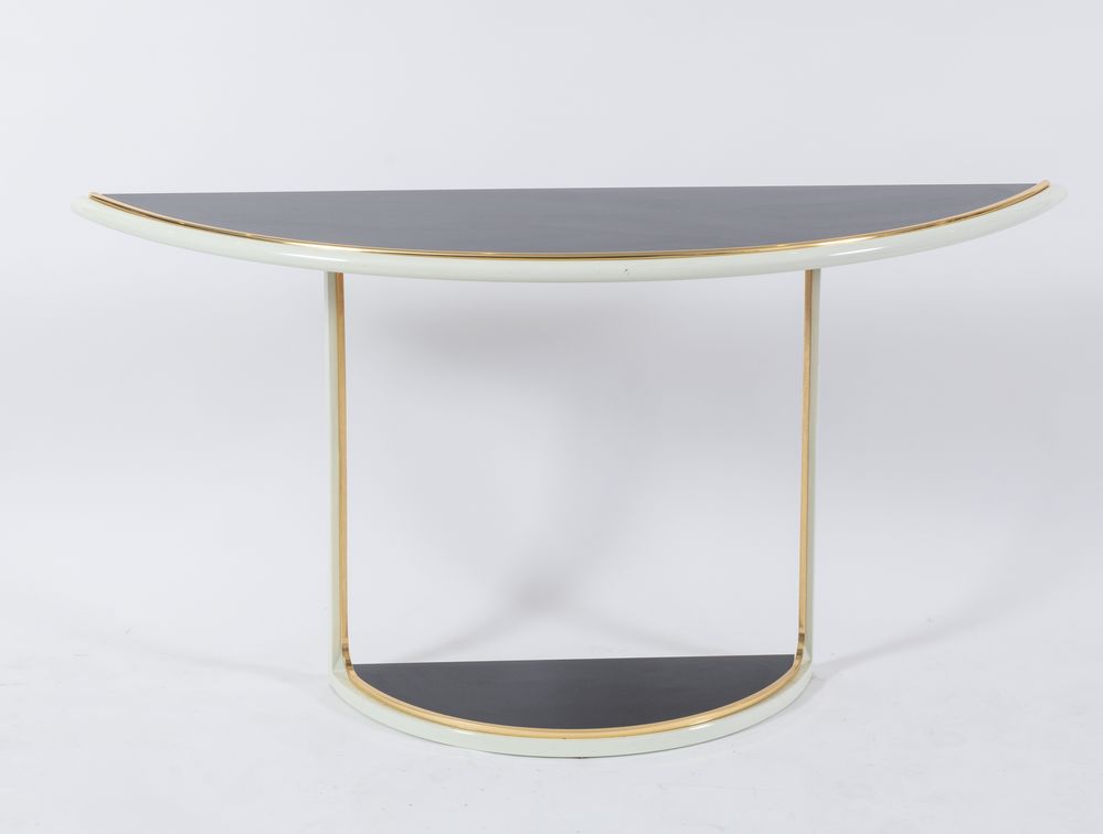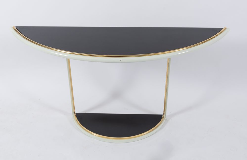 CONSOLLE doppio vetro in metallo e vetro nero. Anni '70. Prod. Italia. Cm 74x139x41,5.