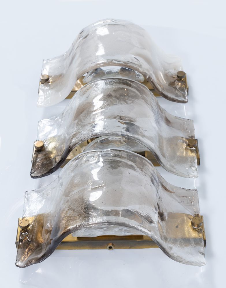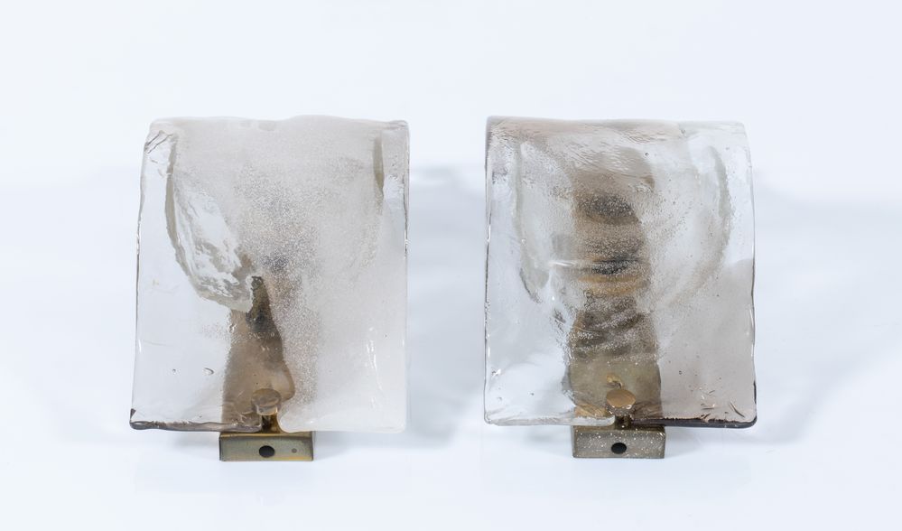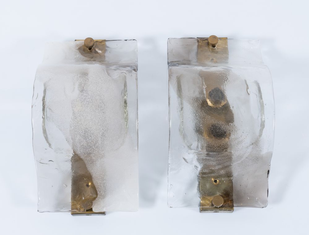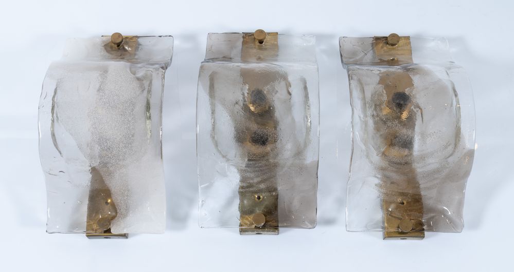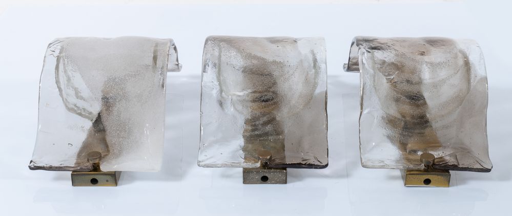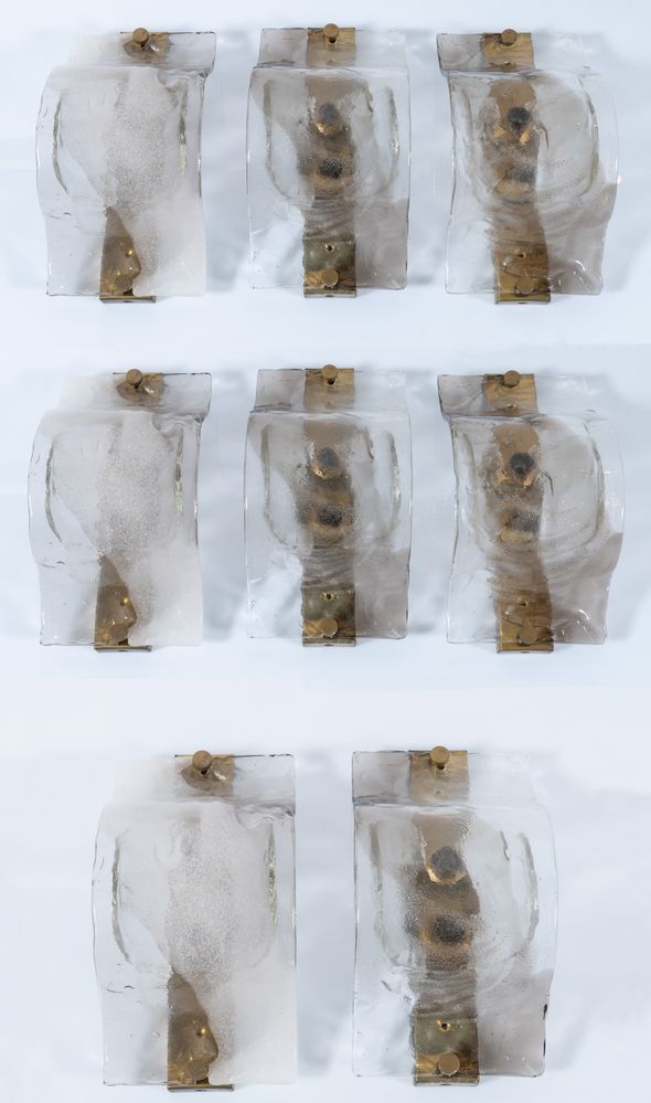 CARLO NASON per Mazzega. Set di 8 lampade da parete in vetro di Murano e ottone. Prod. Italia, anni '60. Cm 33x18x14,5.