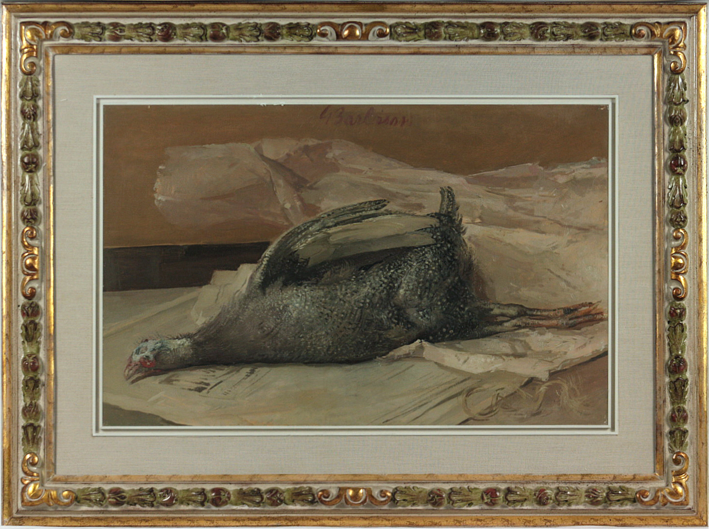Giovanni Barbisan (1914-1988) Faraona, 1963 Olio su tela cm 45x70 Firma in...