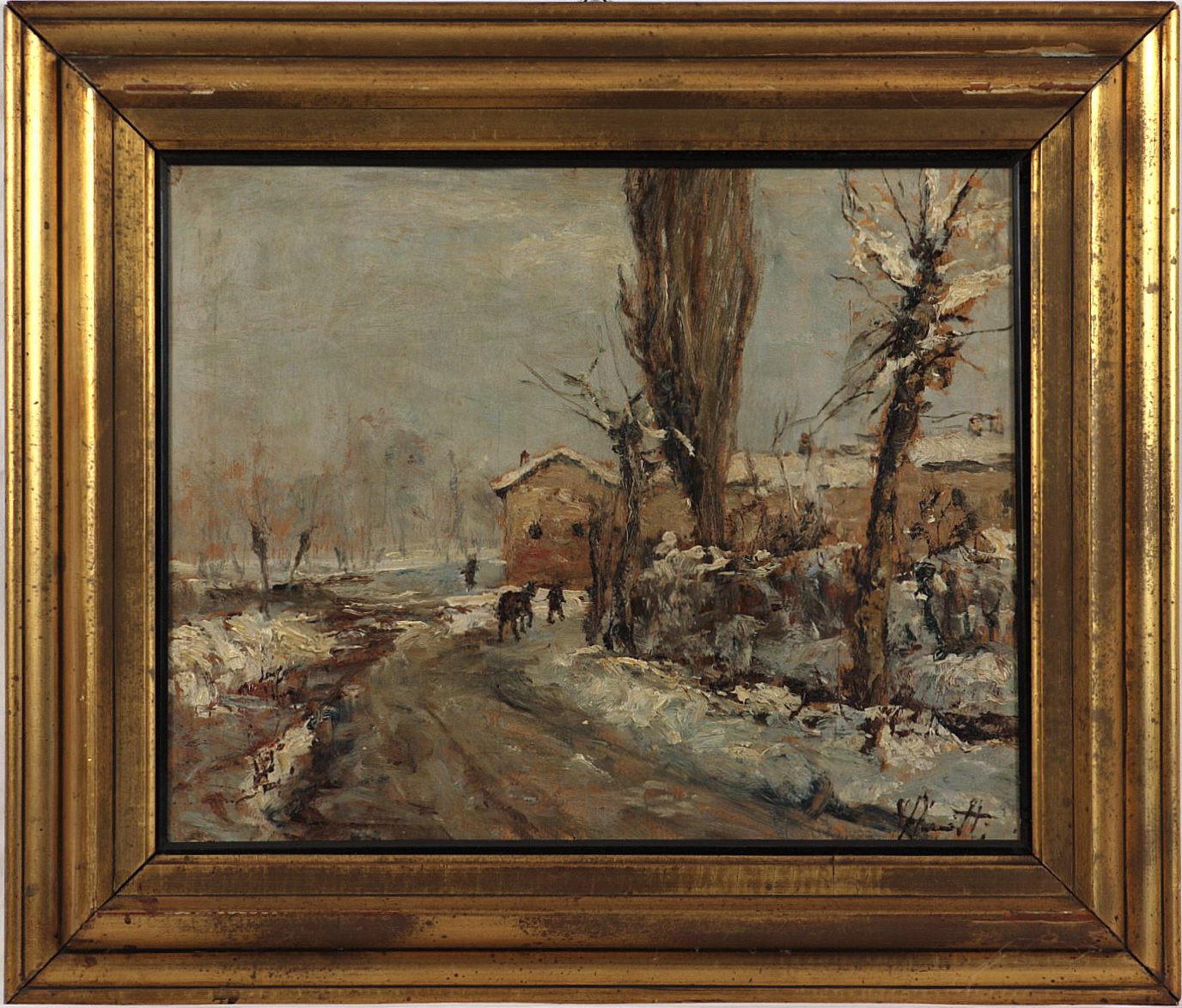 Carlo Aimetti (1901-1987) Paesaggio Invernale Olio su tavola cm 40x50 Firma...