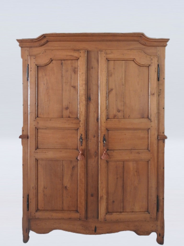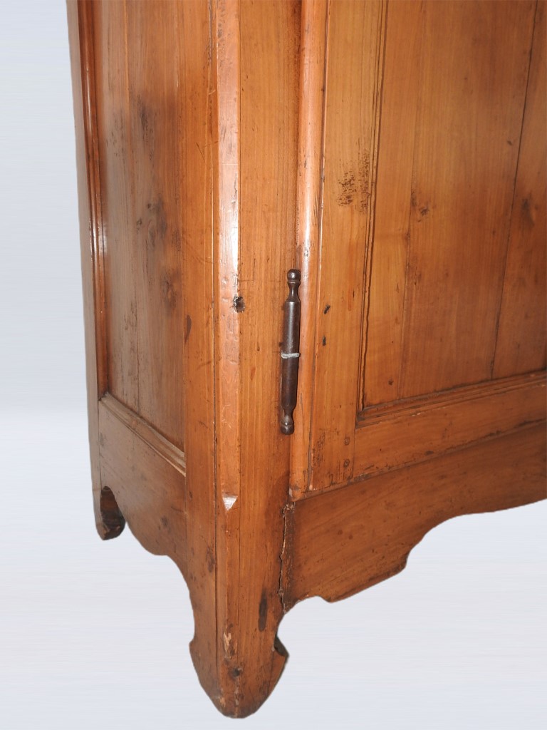 cappello sagomato, due sportelli, base modanata, piedi a mensola