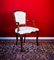 spalliera sagomata, braccioli mossi a giorno, gambe sinuose, imbottita e rivestita in cotone bianco