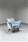Poltrona con struttura in legno e rivestimento in tessuto.