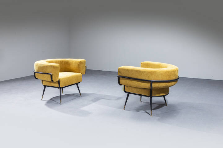 Tubolare metallico verniciato, particolari in ottone e tessuto imbottito.
