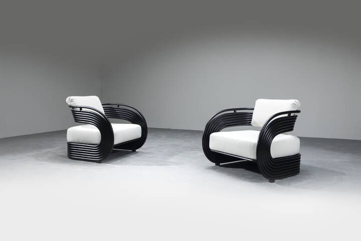 JOE COLOMBO<BR>Coppia di poltrone mod. Nastro