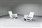 Coppia di poltrone con struttura in legno verniciato.