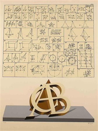 Lucio del Pezzo (Napoli 1933), "Senza titolo", litografia su cartoncino, es....