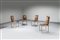 Quattro sedie con struttura metallo e imbottitura rivestita in tessuto.