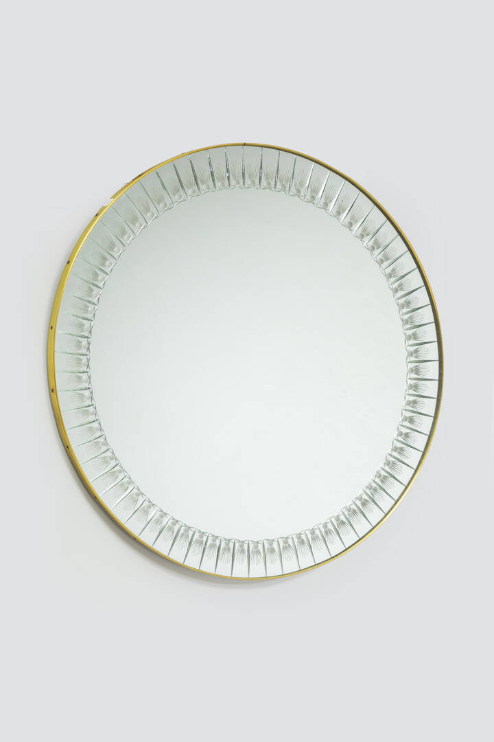 Vetro specchiato con bordo in metallo.