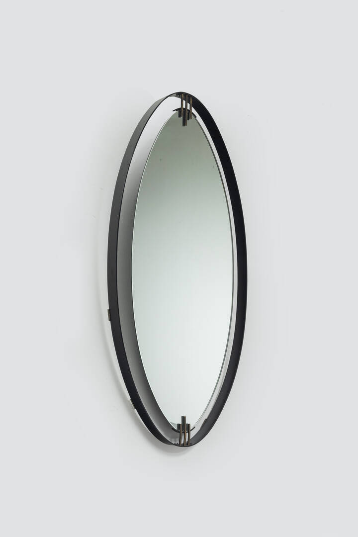 Metallo laccato, vetro specchiato e particolari in ottone.